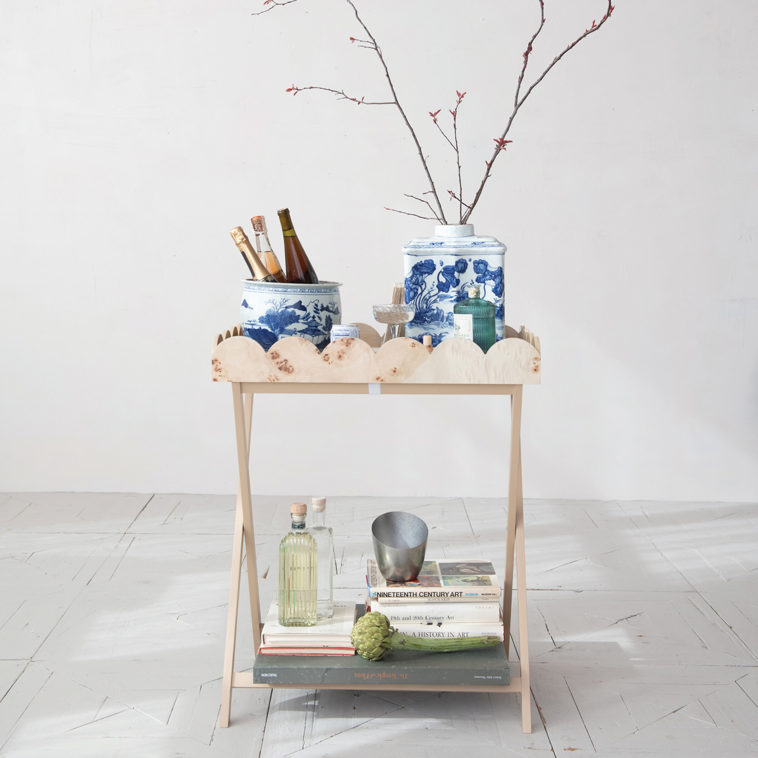 MDF & Burl Wood Veneer Folding Table w/ Removable Scalloped Tray, Natural, KD