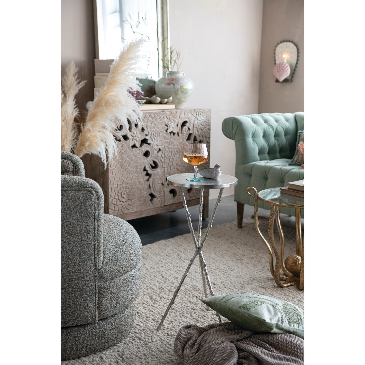 Catalog Name: 13" Round x 25"H Aluminum Tripod Table w/ Twig Shaped Legs, Nickel Finish, KD