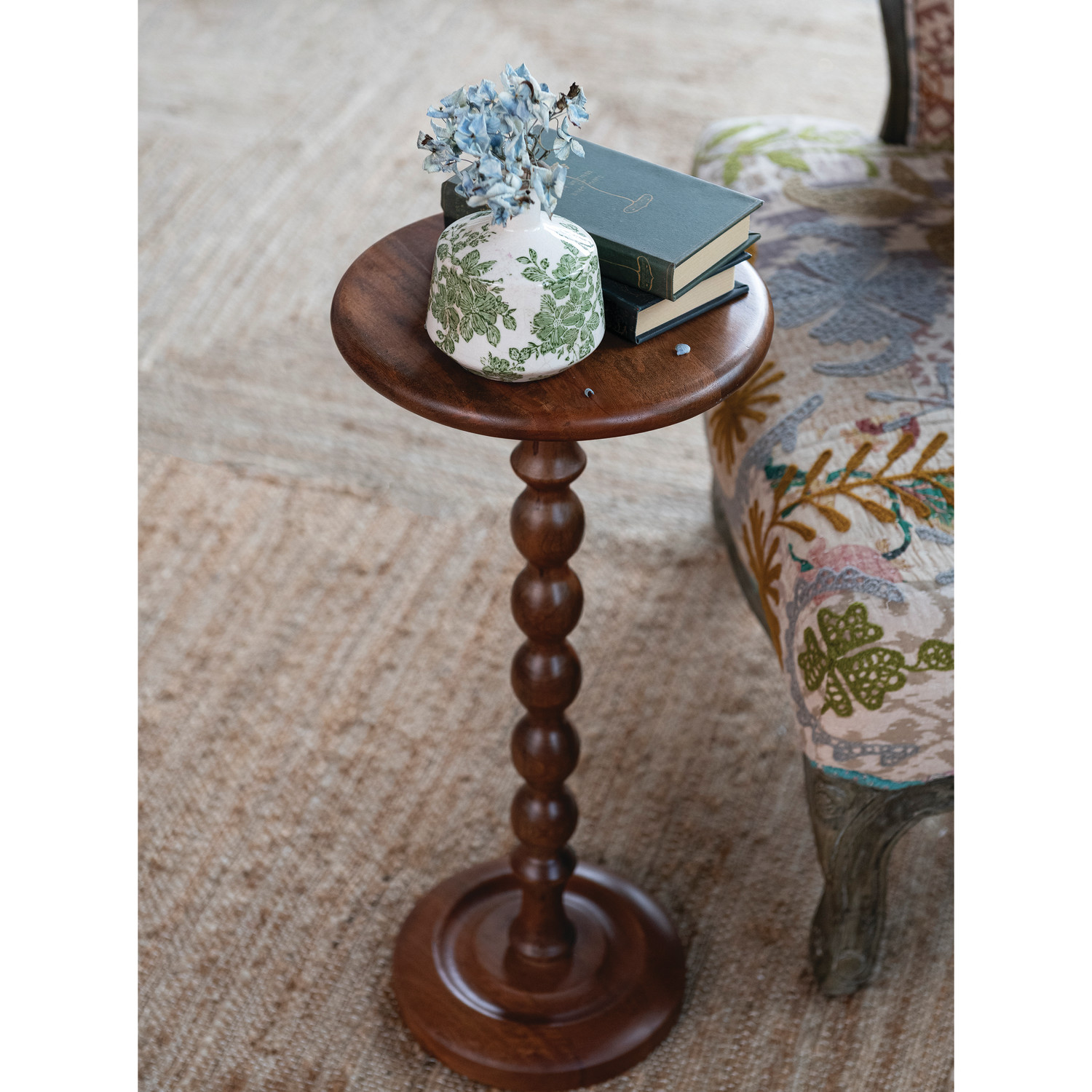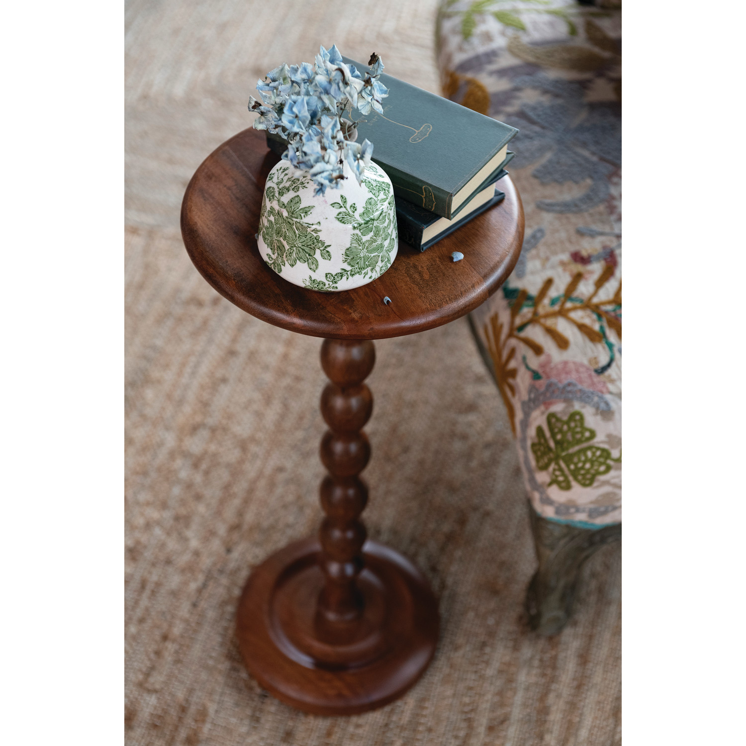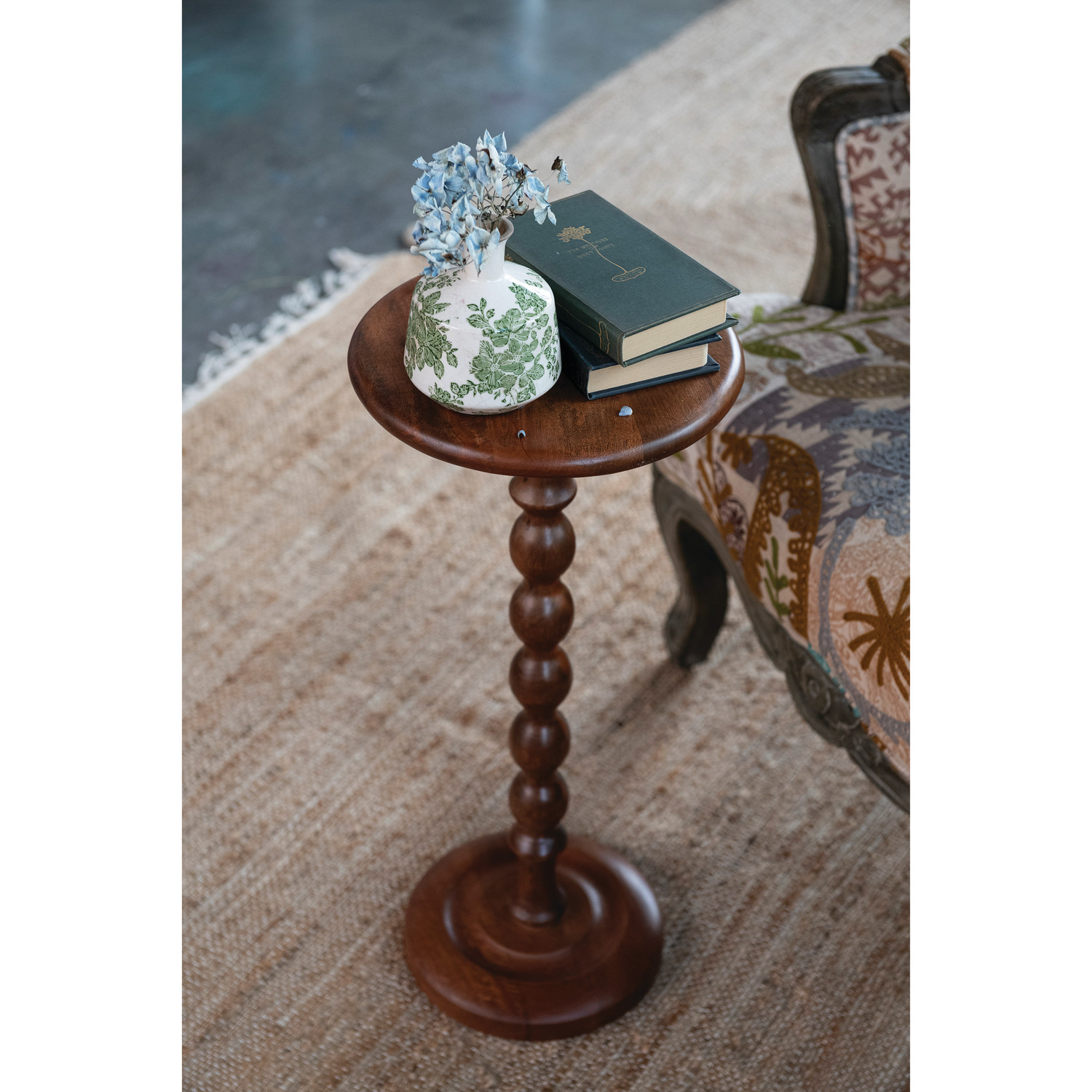 Catalog Name: 11" Round x 24-1/2"H Mango Wood Turned Martini Table, Walnut Finish