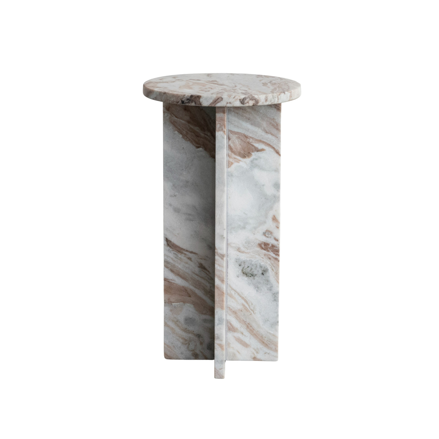 Catalog Name: 12" Round x 22"H Marble Table, Brown Torrento, Truck Ship