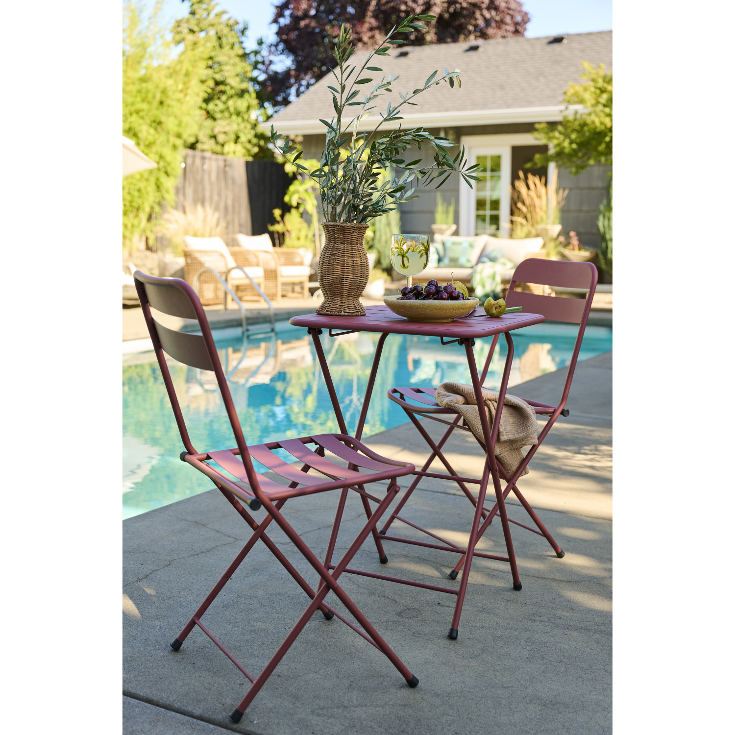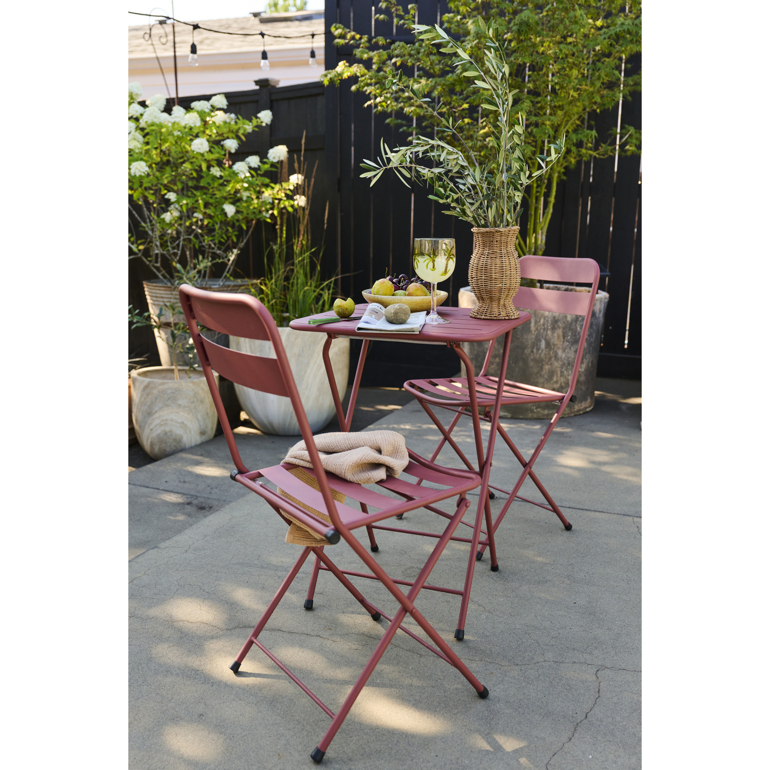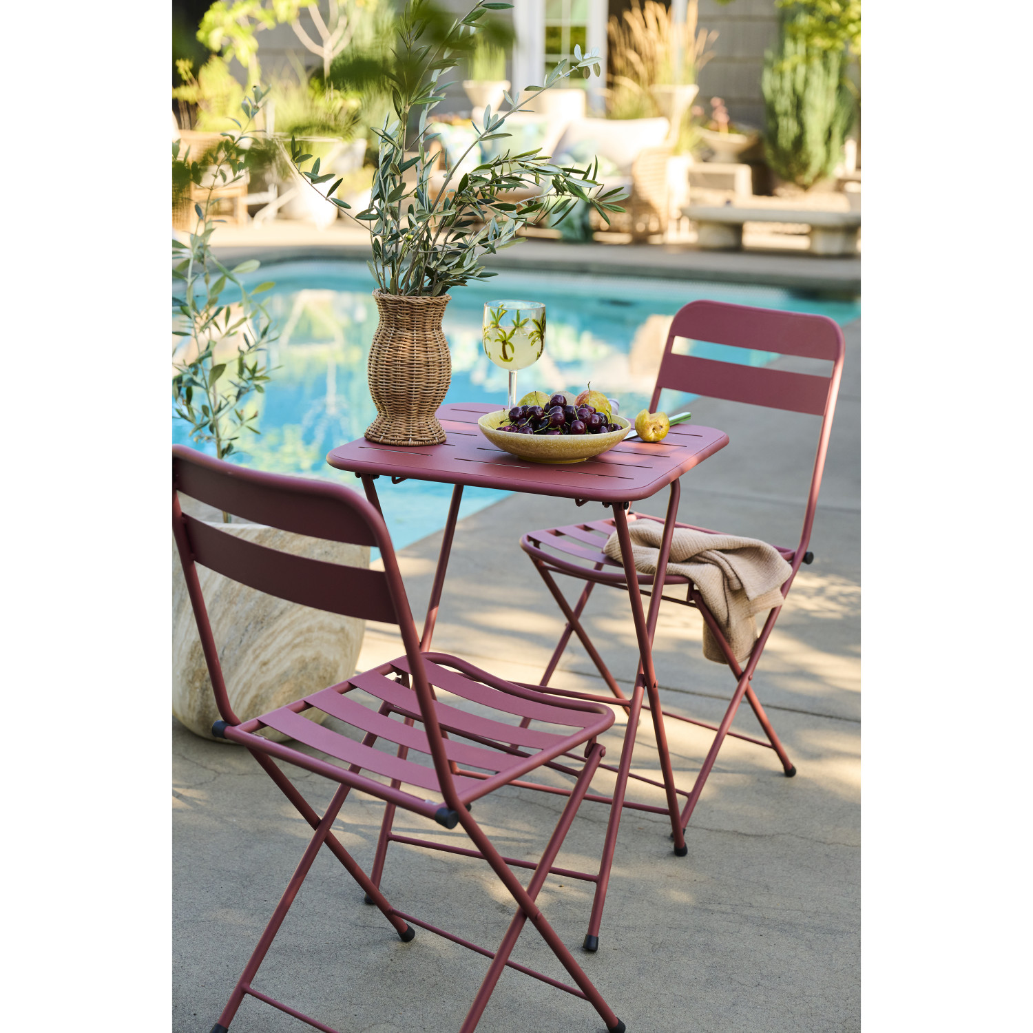 Metal Indoor/Outdoor Folding Table with (2) Metal Slatted Folding Chairs, Set of 3