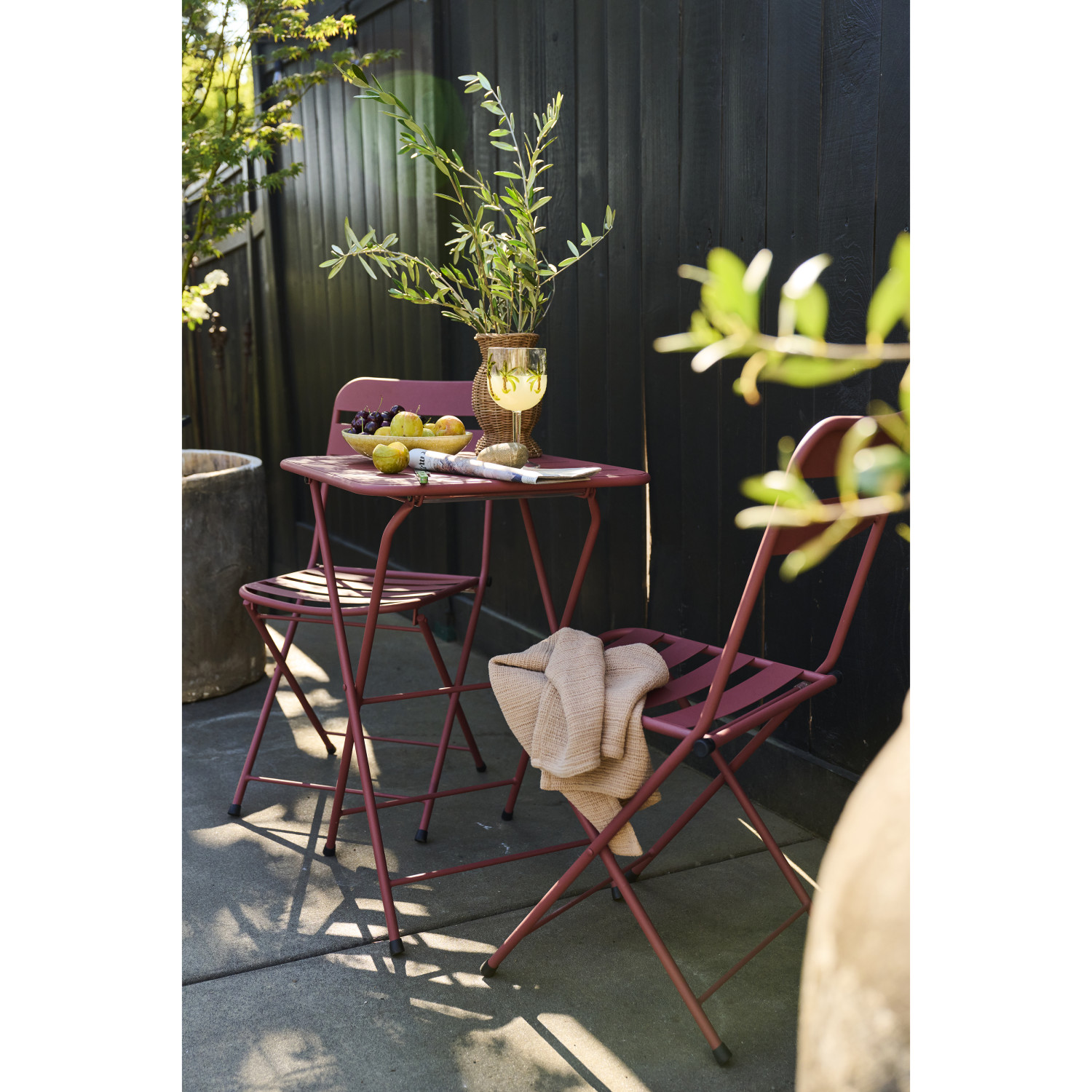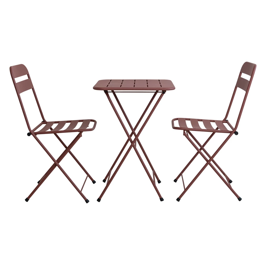 Catalog Name: 16"L x 20-1/2"W x 39-1/2"H Metal Indoor/Outdoor Folding Table w/ (2) 16"W x 20-1/2"D x 33"H Metal Slatted Folding Chairs, Clay Color, Set of 3, Truck Ship