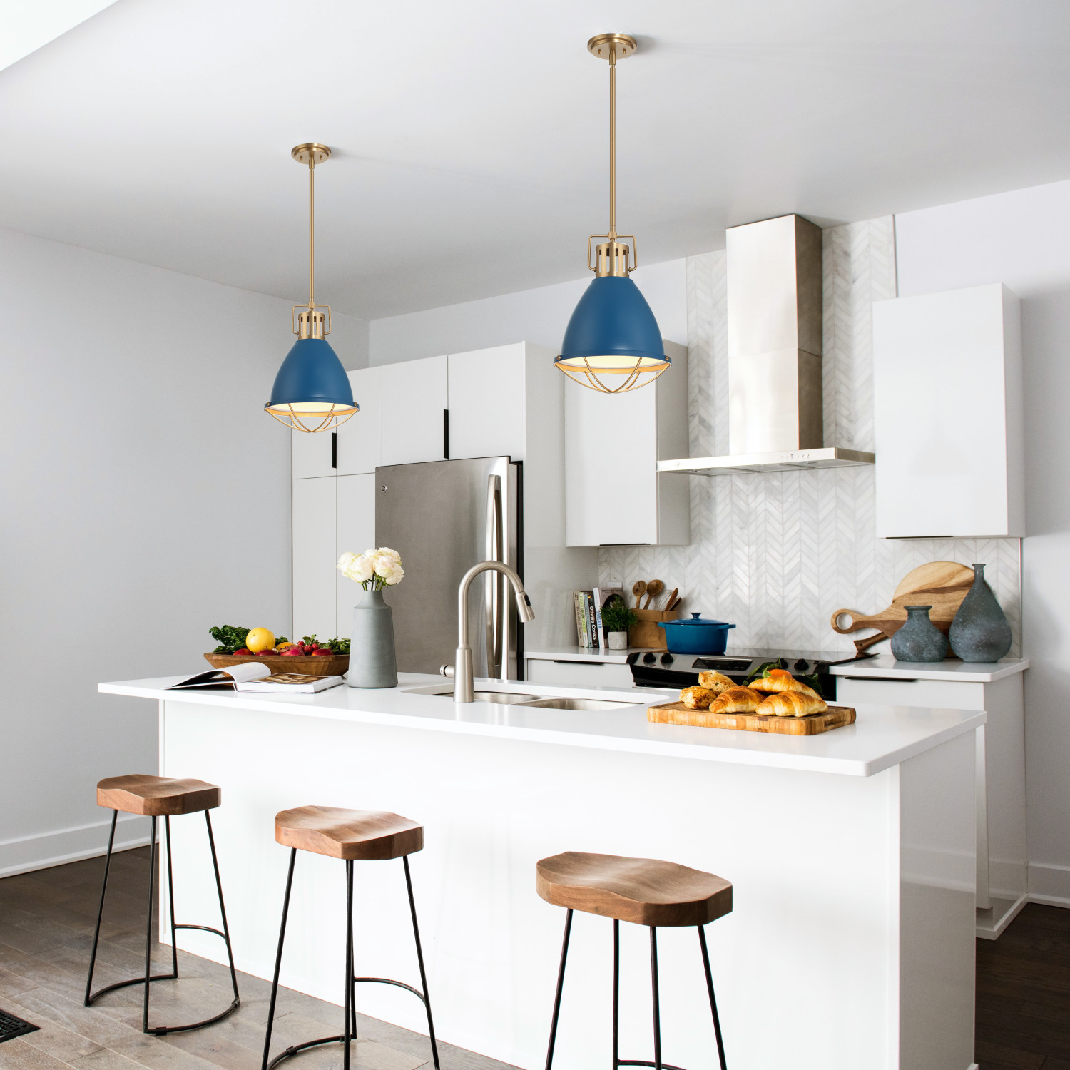 12-3/4"W Metal 1-Light Pendant w Shade, Brushed Gold
