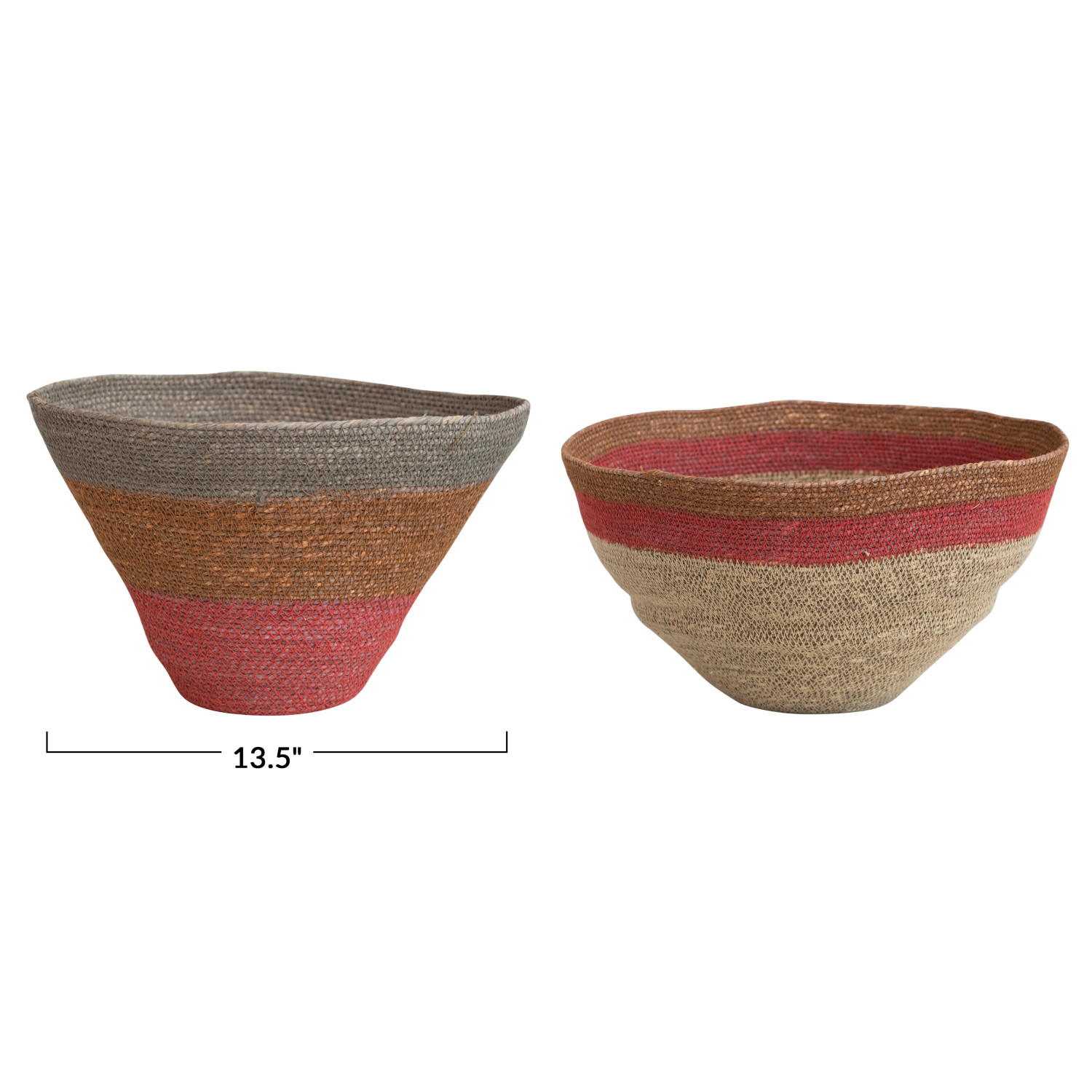 Catalog Name: 13-1/2" Round x 8-1/2"H & 11" Round x 6-3/4"H Decorative Hand-Woven Seagrass Nesting Baskets, Multi Color, Set of 2