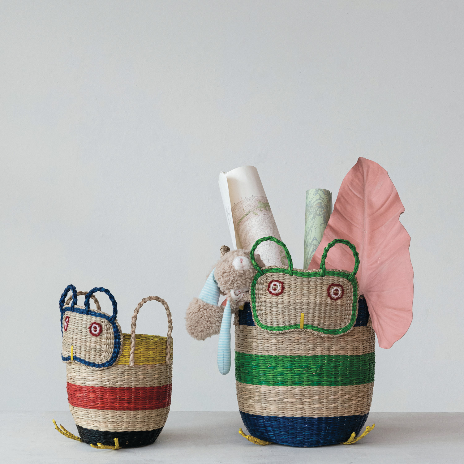 Catalog Name: 10" Round x 13"H & 8" Round x 10"H Hand-Woven Seagrass Owl Baskets w/ Handles, Multi Color, Set of 2