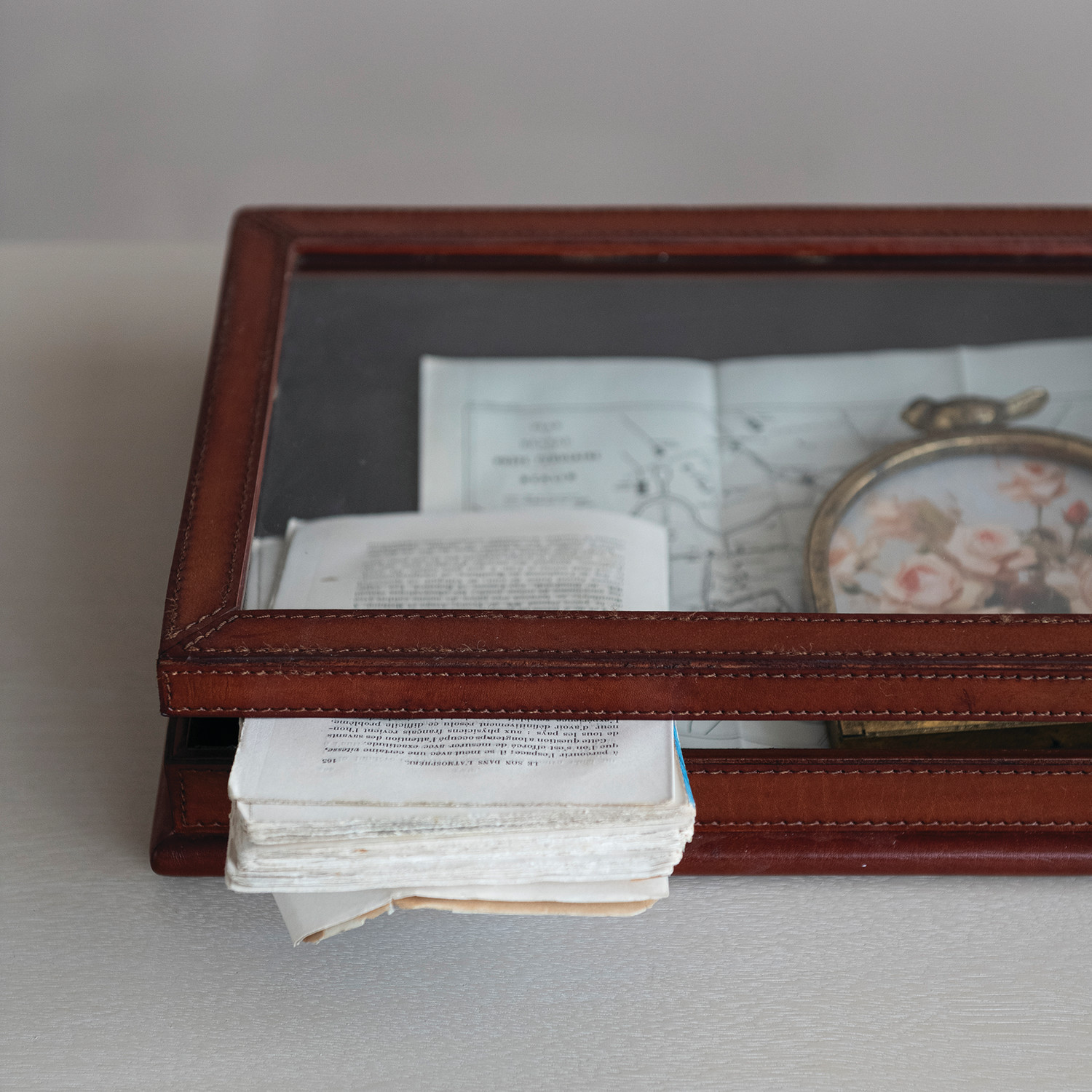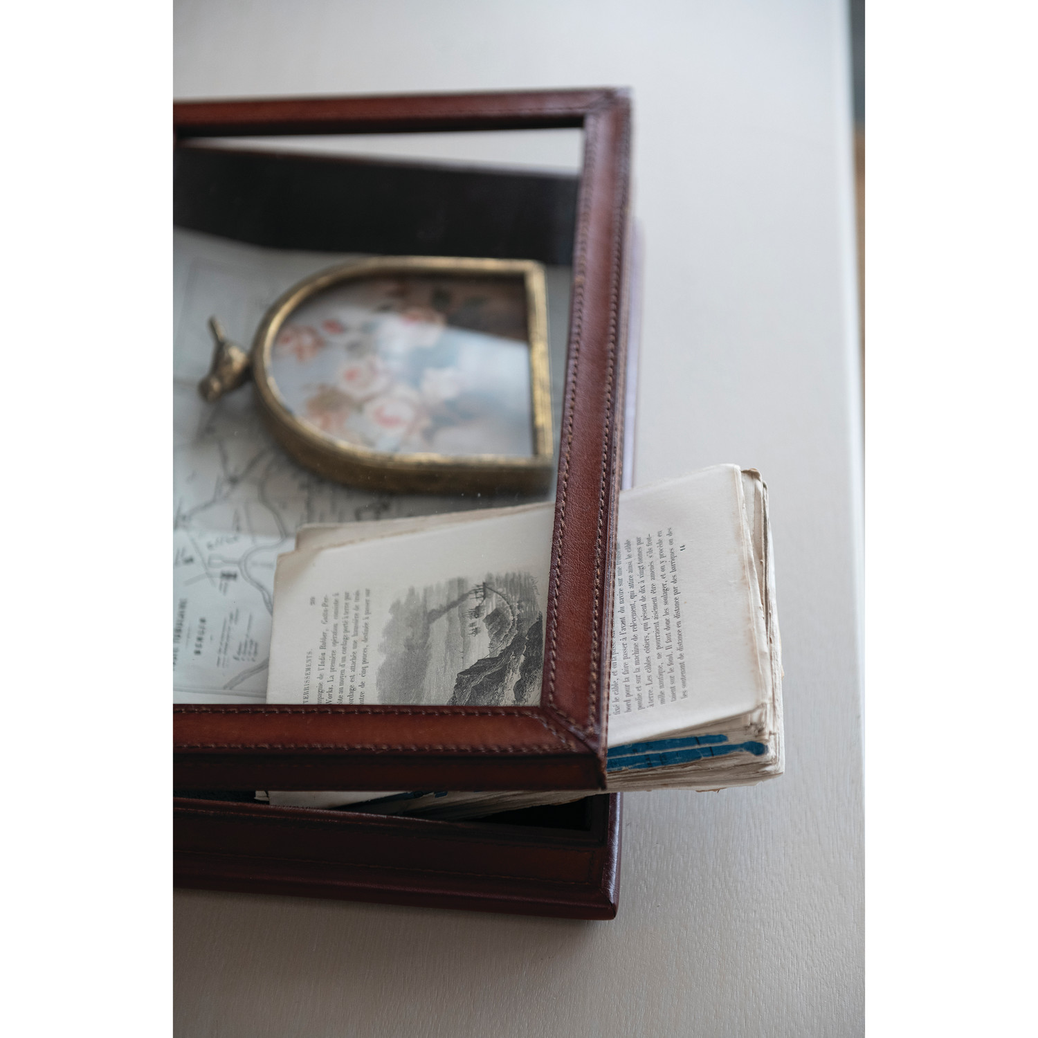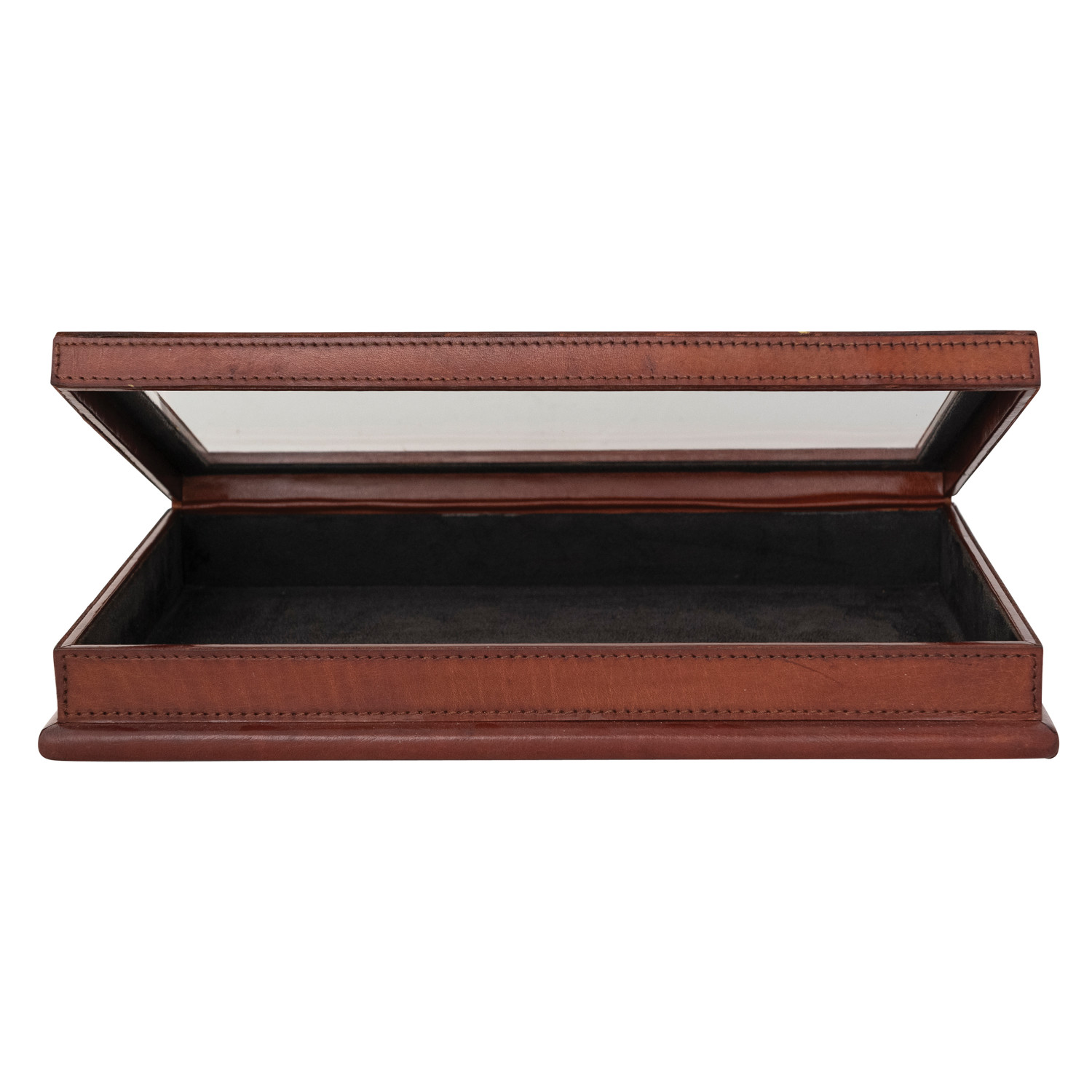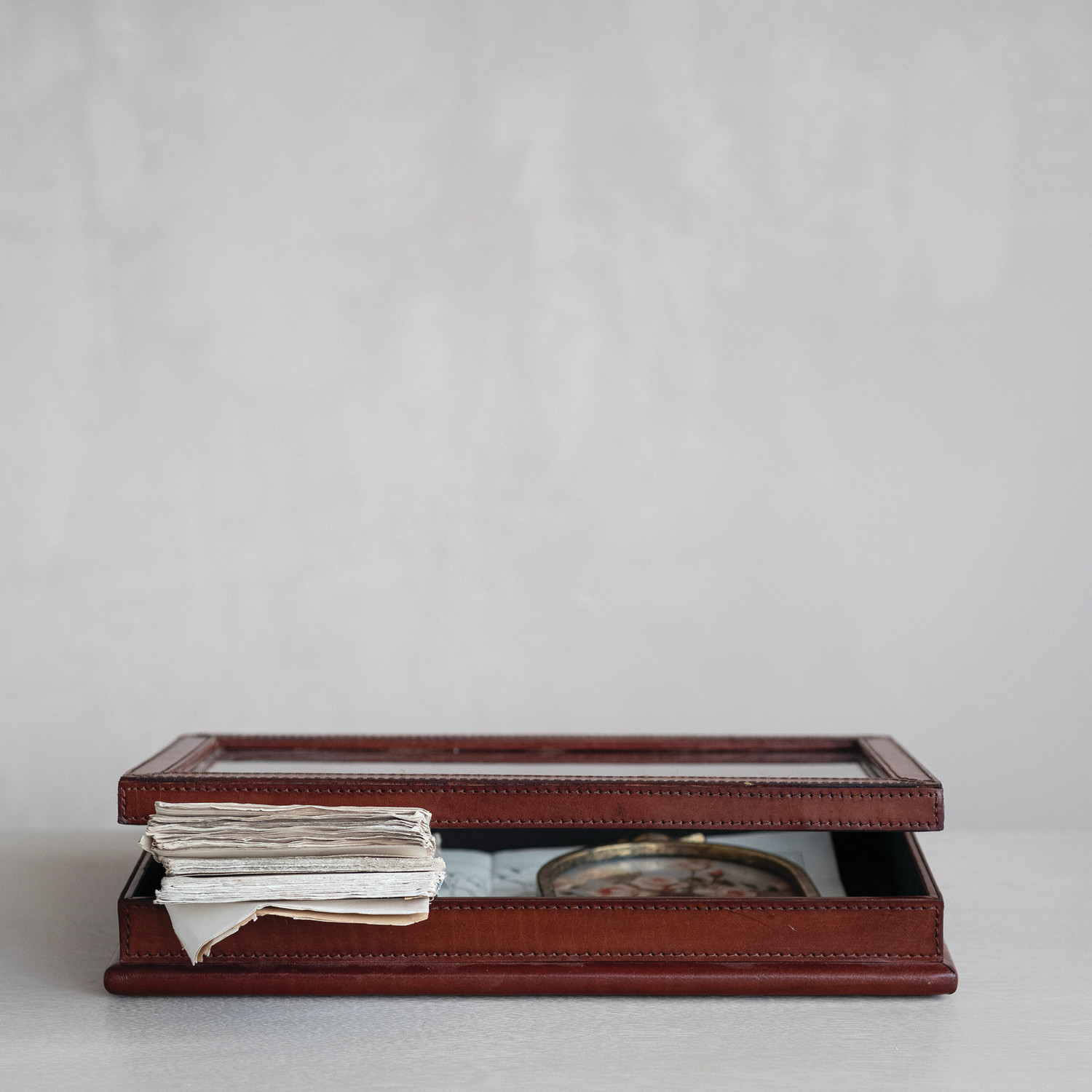 Handmade Leather & MDF Box with Glass Lid & Magnetic Closure, Brown