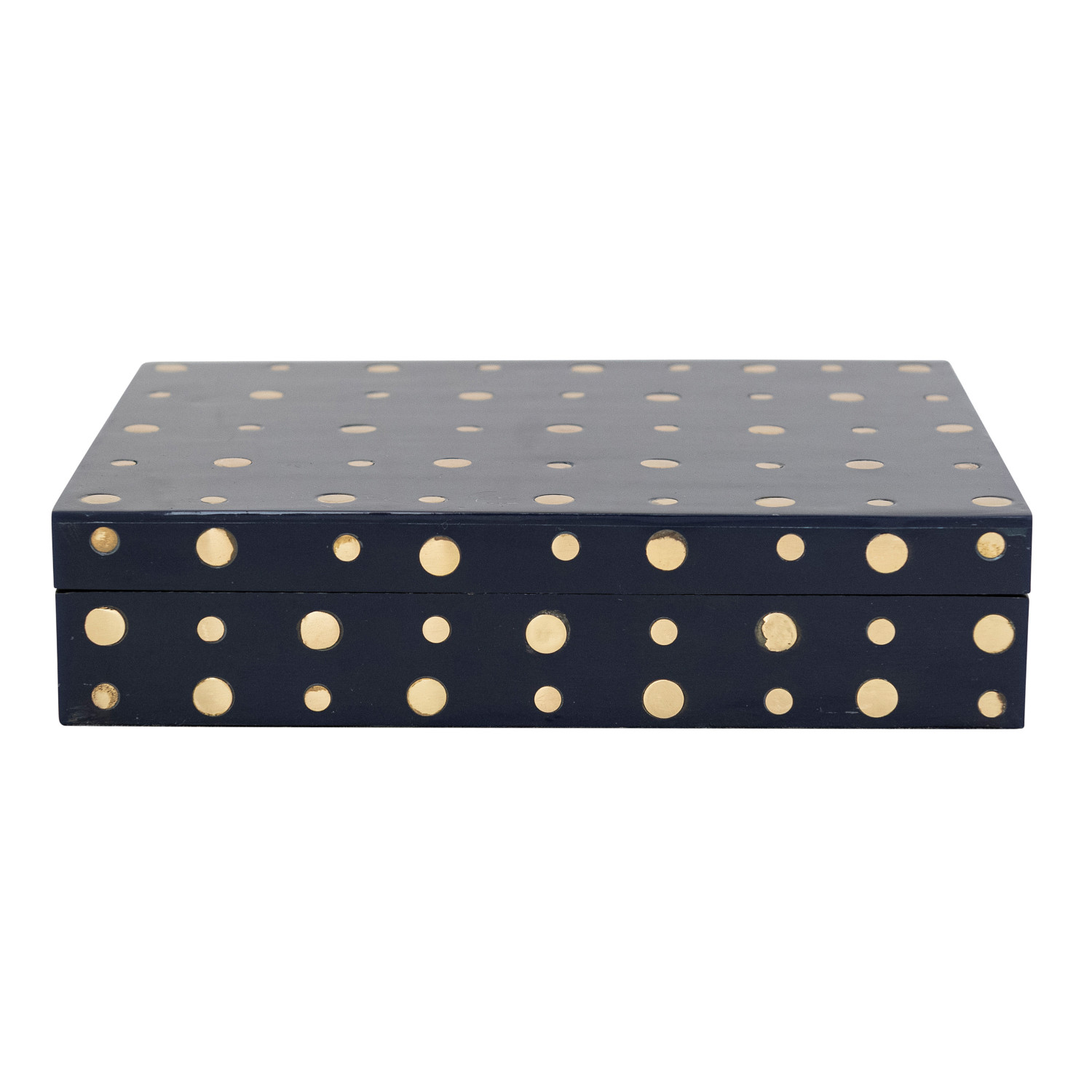 Catalog Name: 9"L x 7"W x 2-1/2"H Resin, Brass & MDF Studded Box, Navy Color (Each One Will Vary)