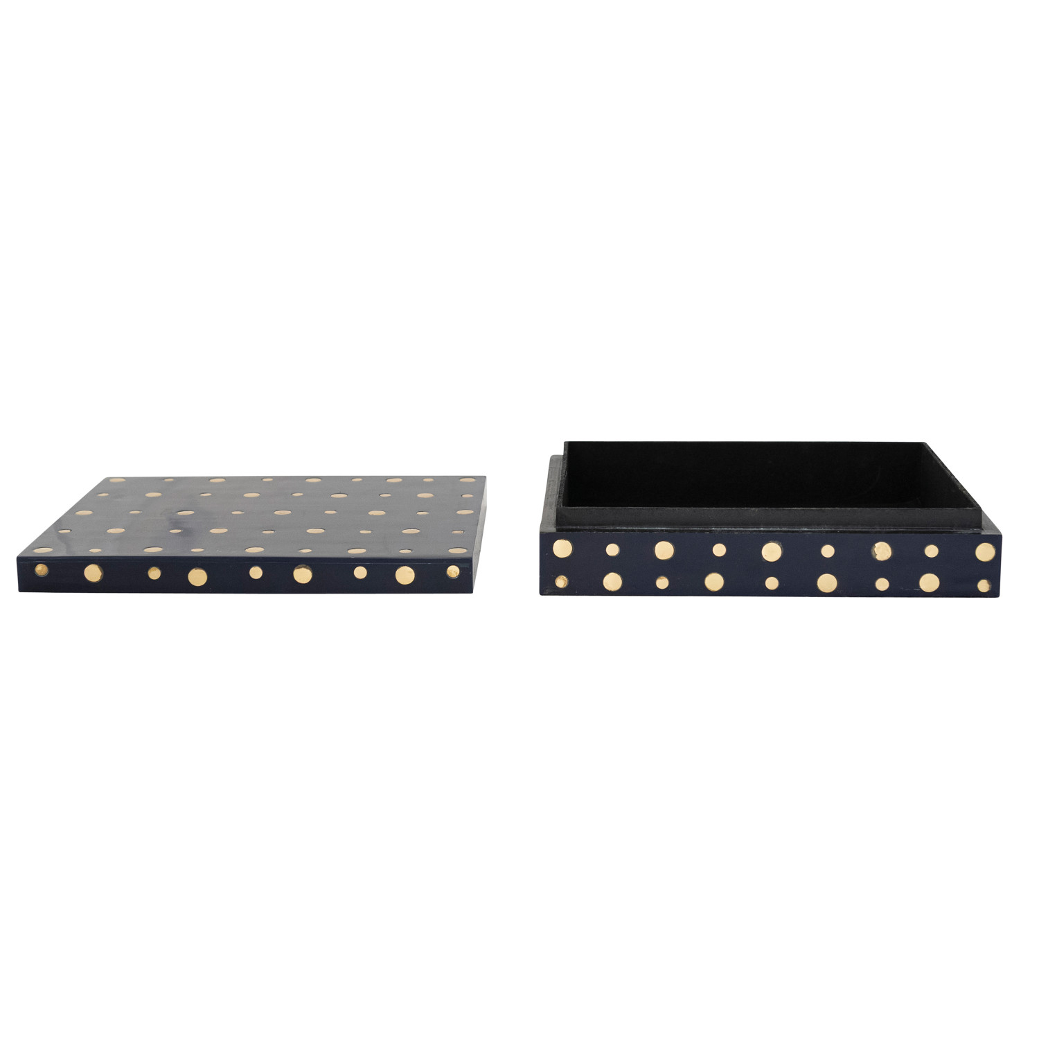 Resin, Brass & MDF Studded Box, Navy Color (Each One Will Vary)