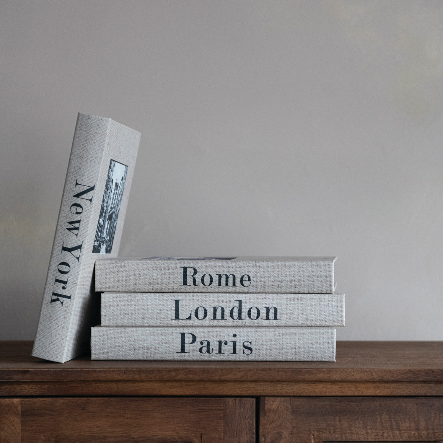 MDF & Linen Book Storage Box with City Name & Image, 4 Styles