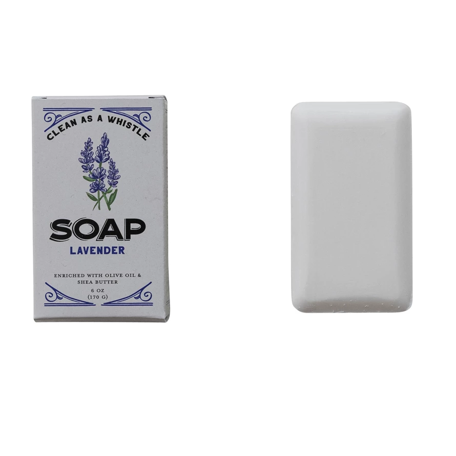 This bar soap is a wonderful addition to any kitchen or bathroom sink. Enriched with olive oil and shea butter, this scented soap has a lavender fragrance. With beautiful packaging detail, this soap looks lovely next to any home's sink. Leaves hands smelling great.