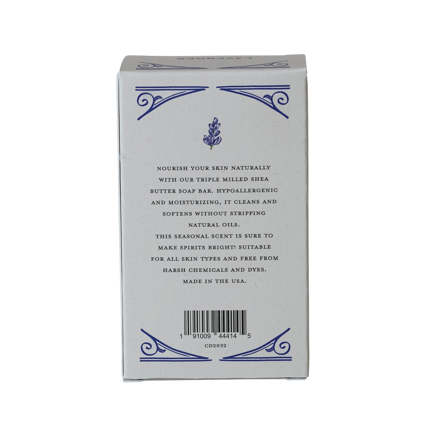 Catalog Name: Lavender Scented Olive Oil & Shea Butter Triple Milled Bar Soap, Made In The U.S.A.