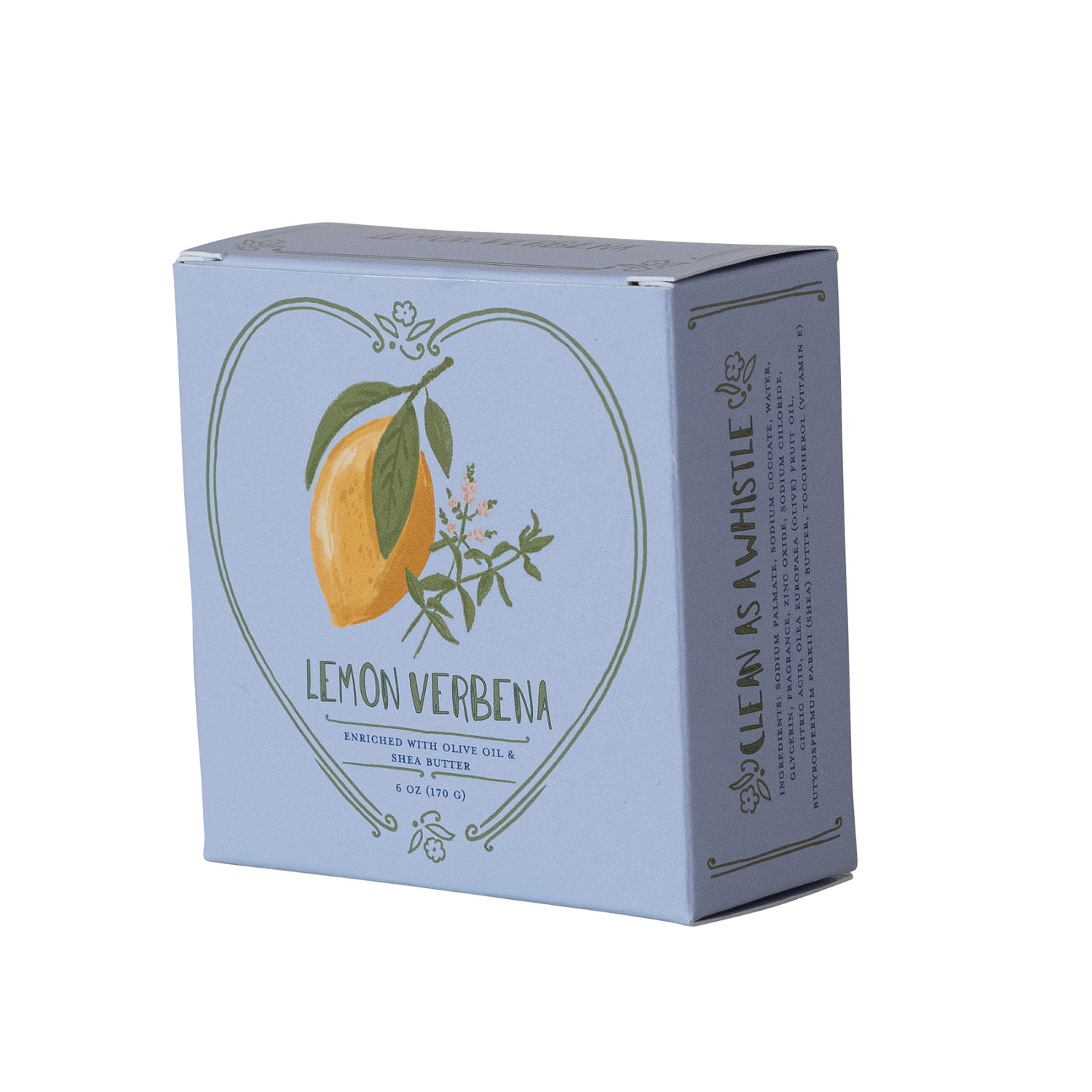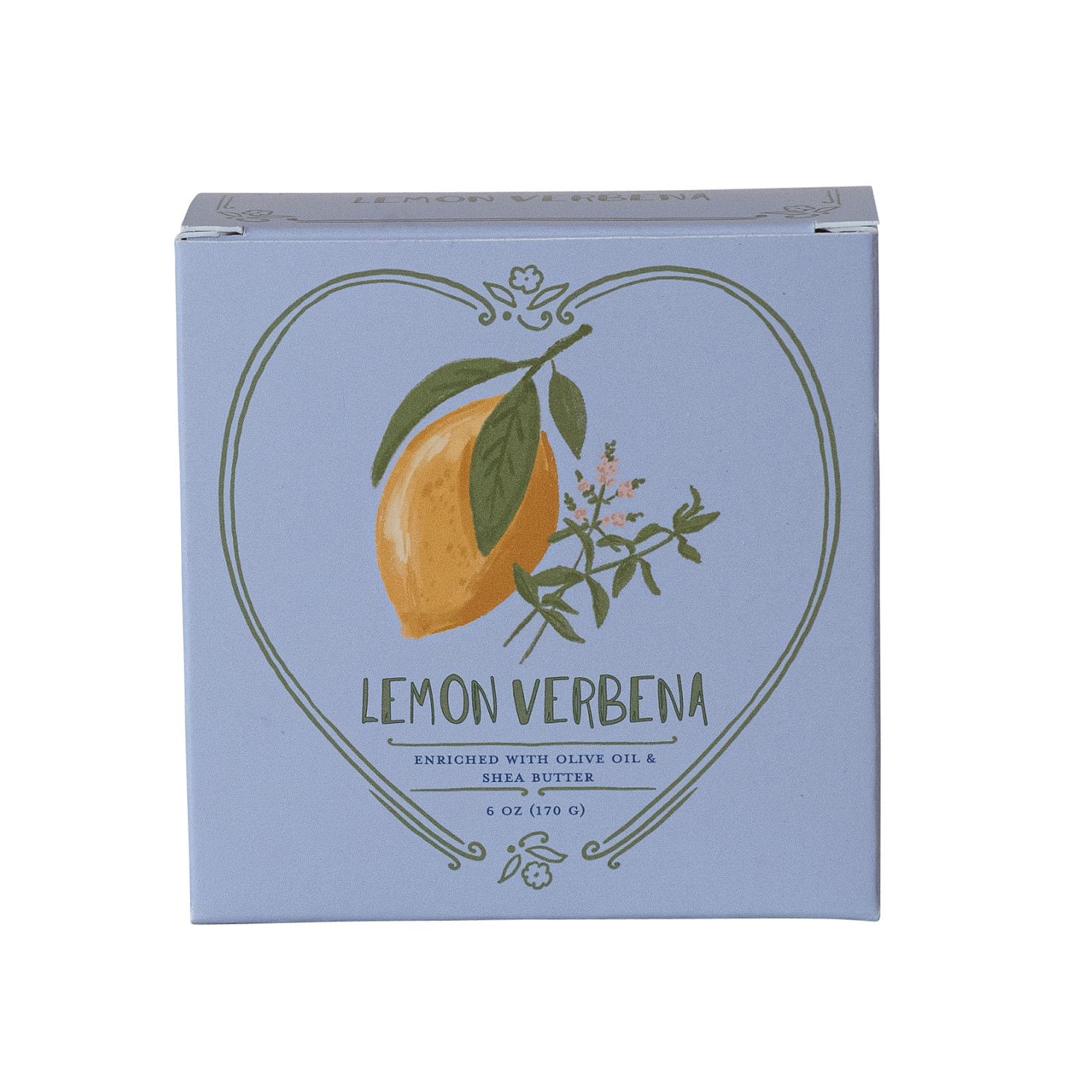 Catalog Name: Lemon Verbena Scented Olive Oil & Shea Butter Triple Milled Heart Shaped Bar Soap, Made In The U.S.A