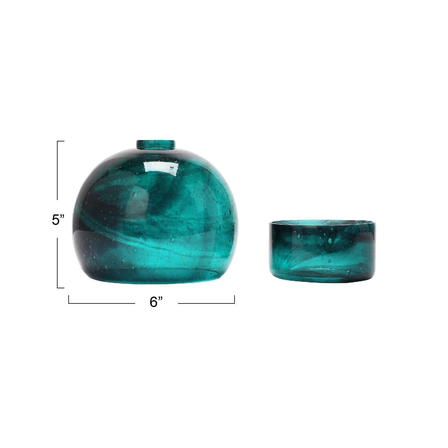 Catalog Name: 6" Round x 5"H Glass Tealight Holder/Vase w/ Cloche, Teal Color, Set of 2