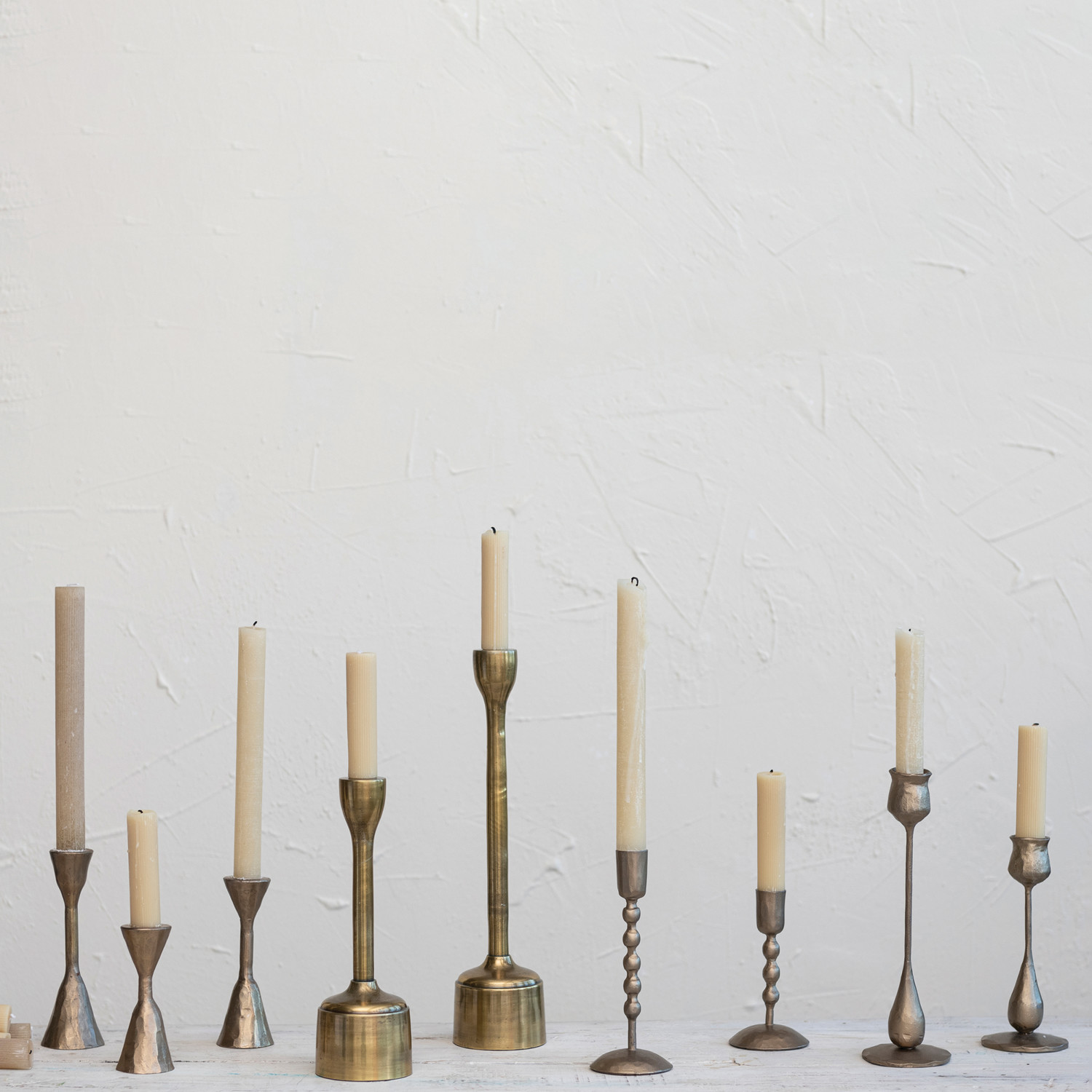 Hand-Forged Iron Taper Holders, Antique Brass Finish, Set of 2
