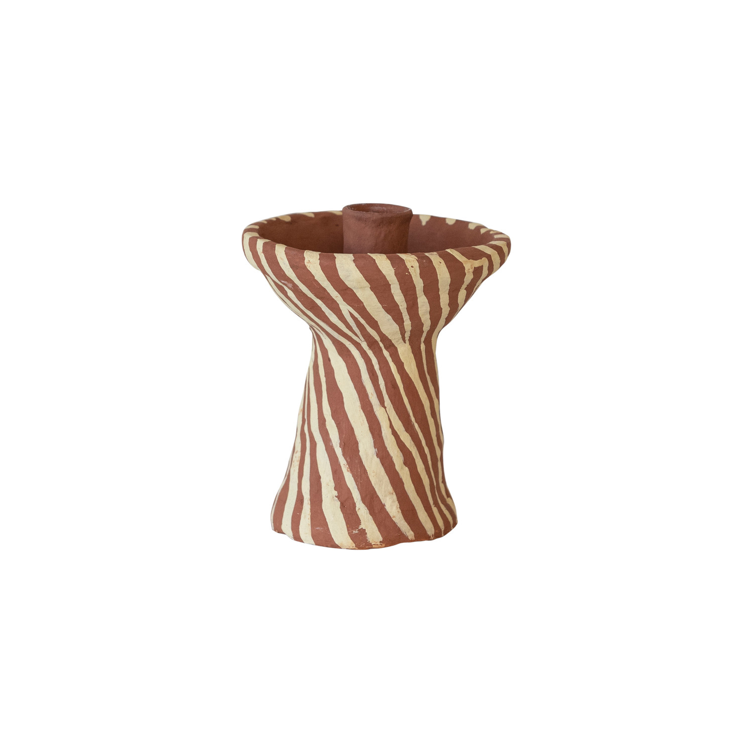 Catalog Name: Approximately 3-1/2" Round x 5"H Handmade Paper Mache Taper Holder w/ Design, Terra-cotta Color & Beige (Each One Will Vary)