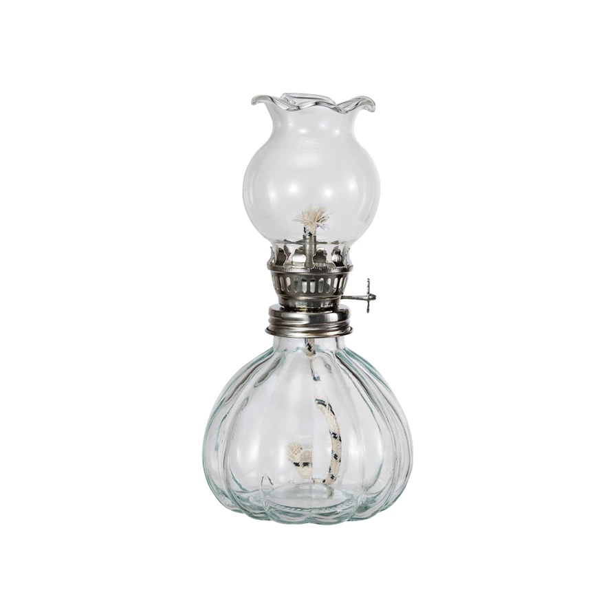 Recycled Glass Oil Lamp w/ Removable Scalloped Glass Top