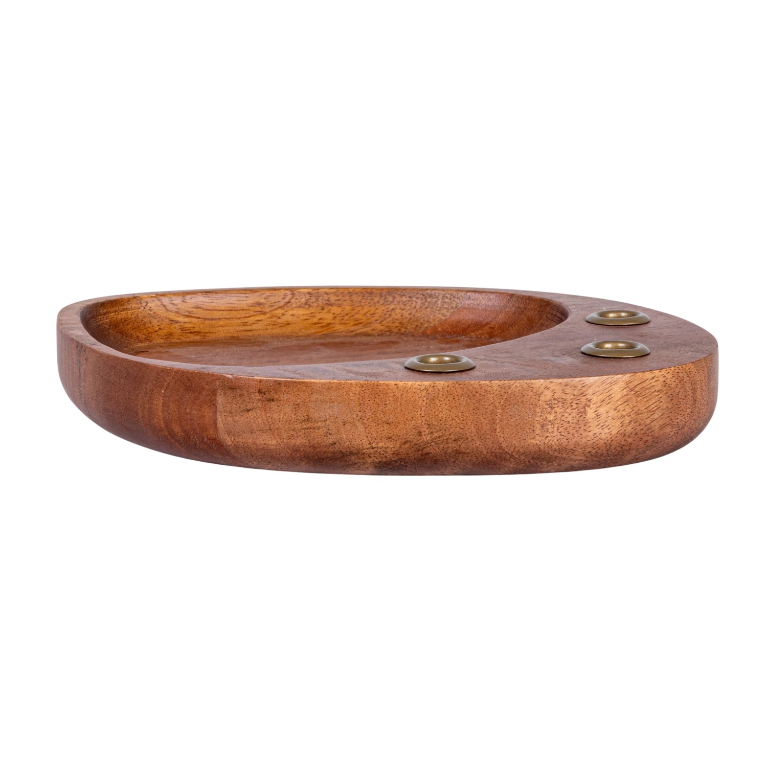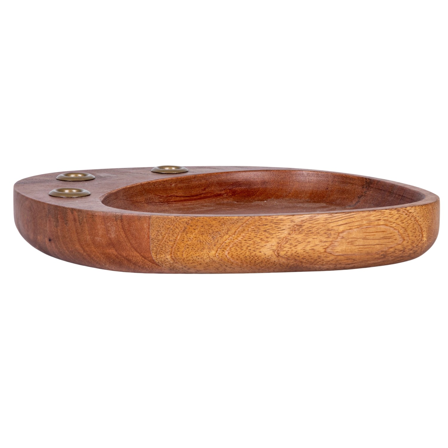 Catalog Name: 9-1/4"L x 7"W x 1-1/4"H Mango Wood & Metal Taper Holder w/ Tray, Gold Finish & Natural (Holds (3) 1/2" Tapers)