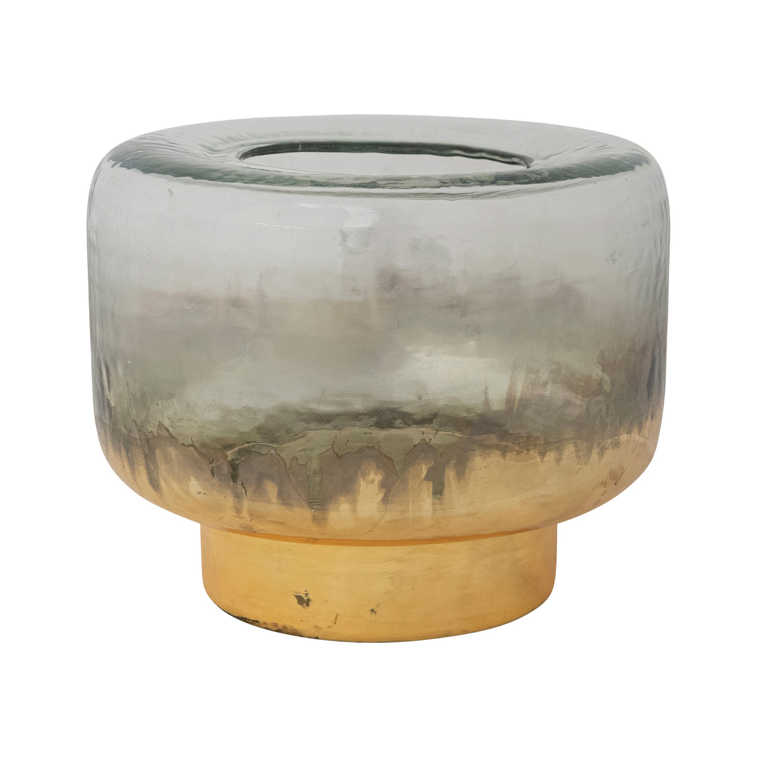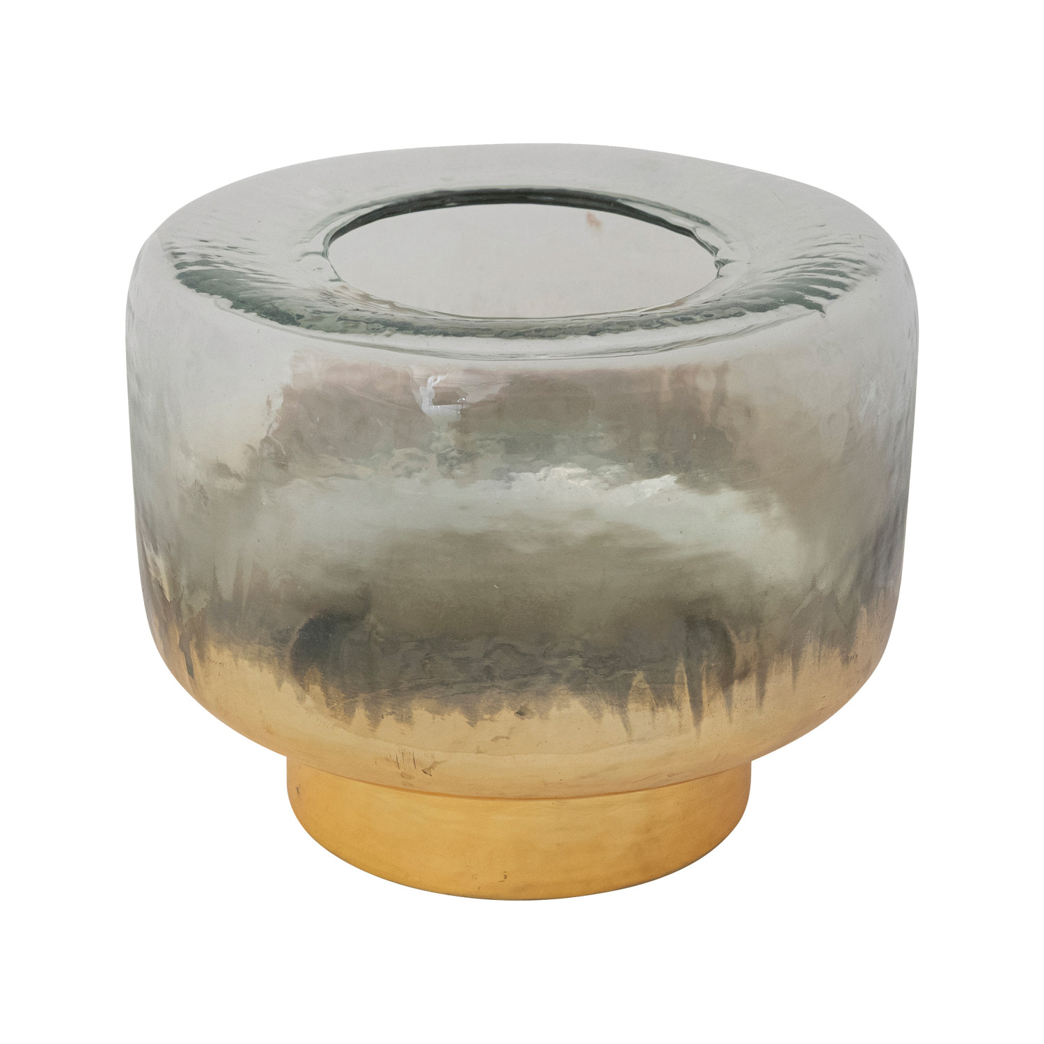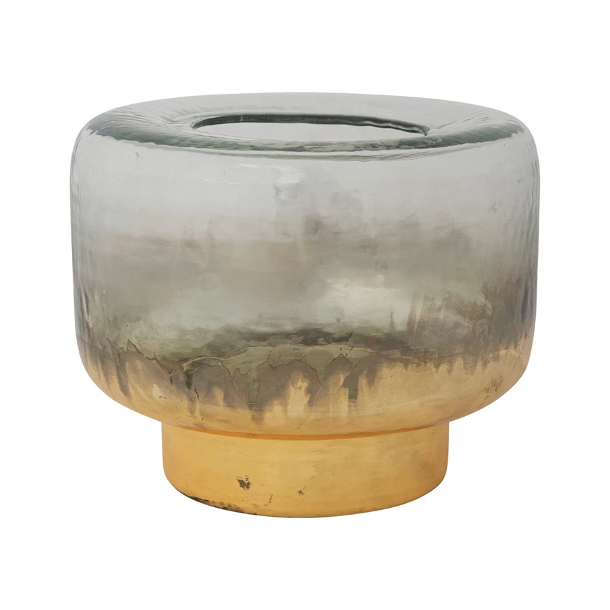 Catalog Name: 9-1/2" Round x 8"H Mercury Glass Hurricane, Gold Finish, Truck Ship