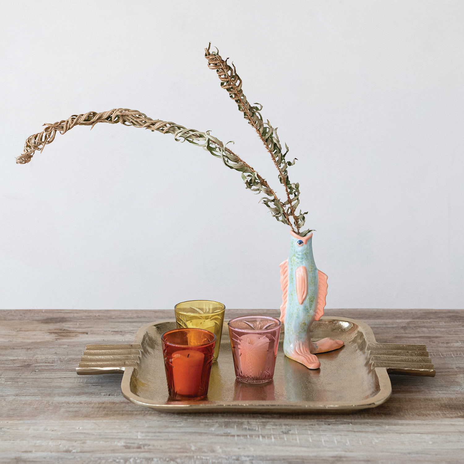 Hand-Blown Etched Glass Tealight/Votive Holder with Palm Trees, 3 Colors