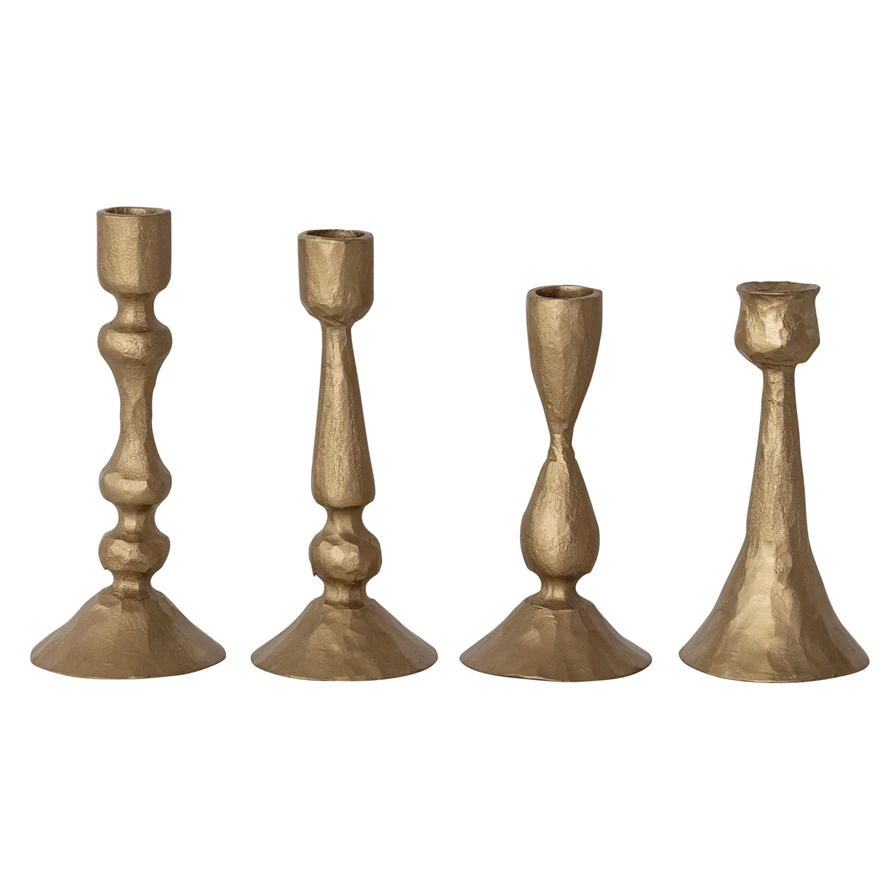Catalog Name: 3-1/2"H - 4-1/4"H Hand-Forged Metal Taper Holder, Antique Gold Finish, 4 Styles (Holds 1/2" Taper)