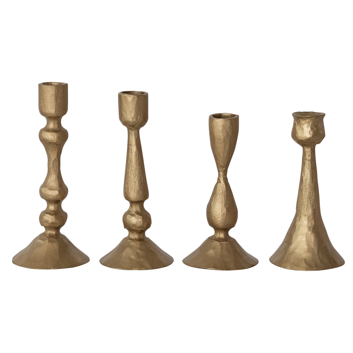 Catalog Name: 3-1/2"H - 4-1/4"H Hand-Forged Metal Taper Holder, Antique Gold Finish, 4 Styles (Holds 1/2" Taper)