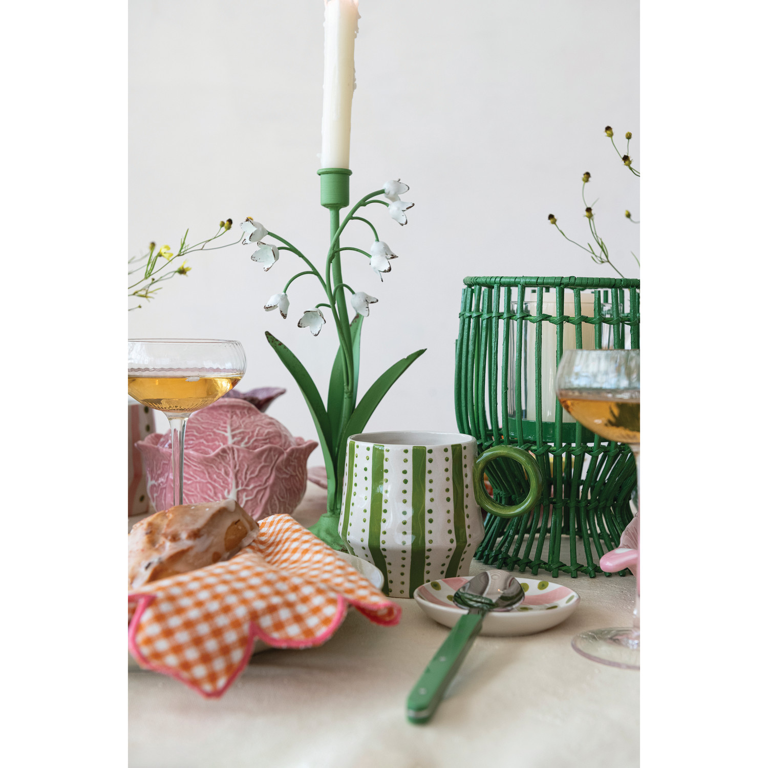 Catalog Name: 6-1/2" Round x 8"H Hand-Woven Rattan Lantern w/ Glass Insert, Green