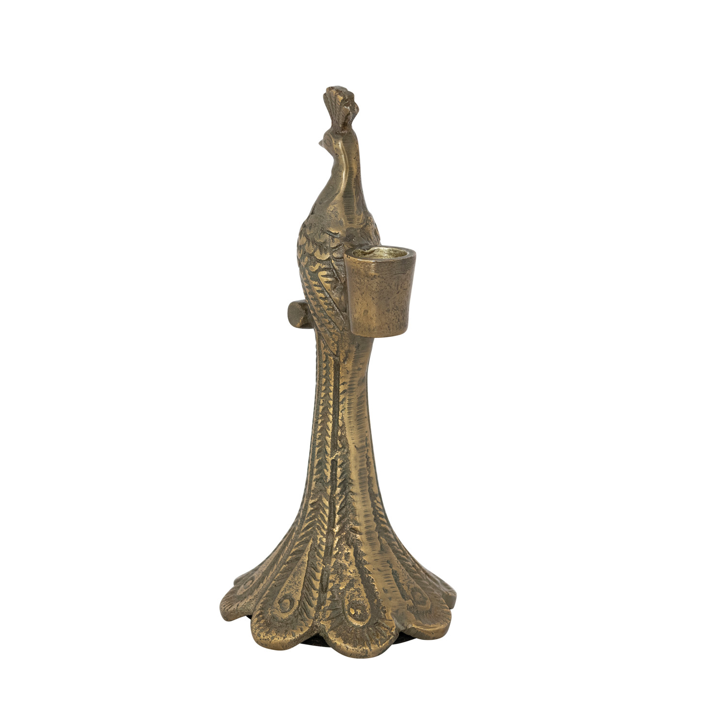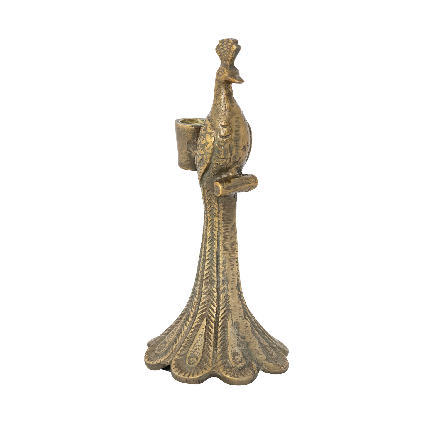 Cast Aluminum Peacock Shaped Taper Holder, Antique Gold Finish