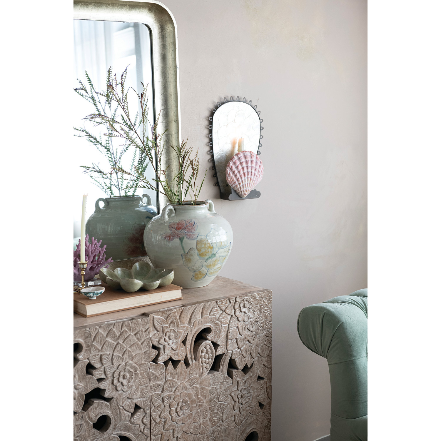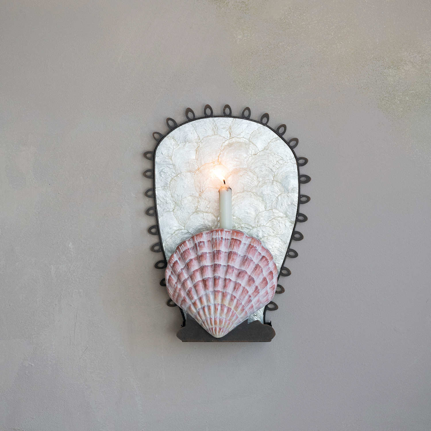 Metal Taper Holder Wall Sconce with Resin Shell (Hangs or Sits)