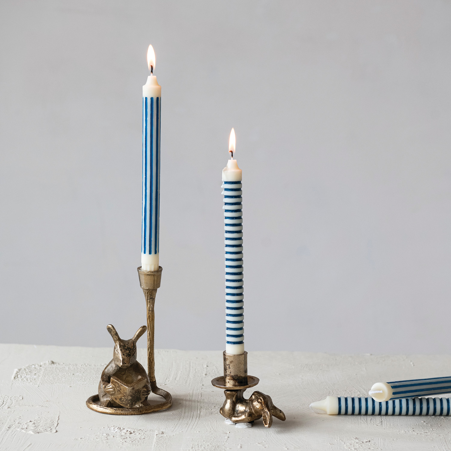 Cast Aluminum Mouse Shaped Taper Holder, Antique Gold Finish