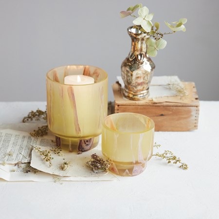 Glass Scalloped Table Light Tealight/Taper Holder, 2 Colors