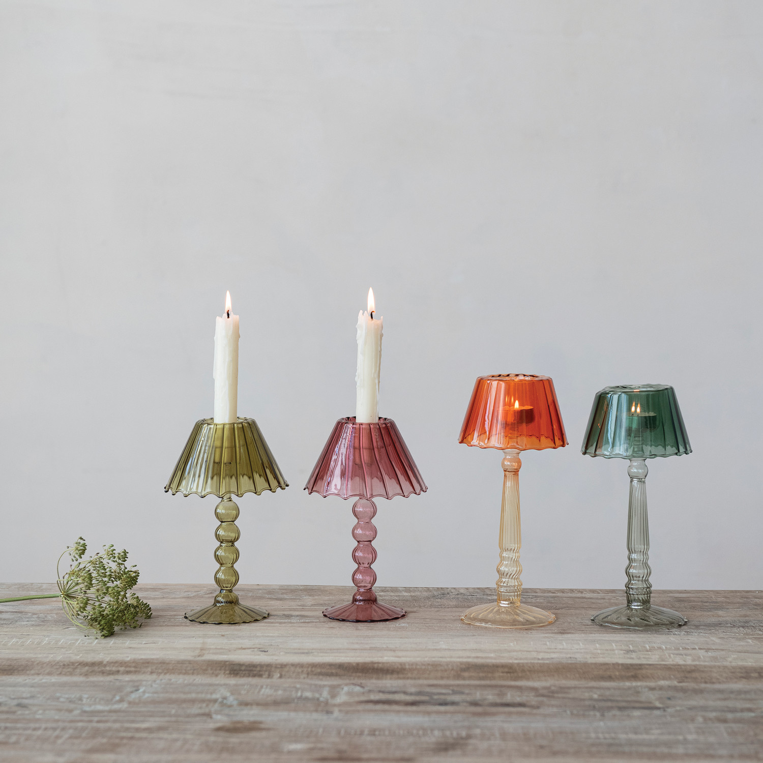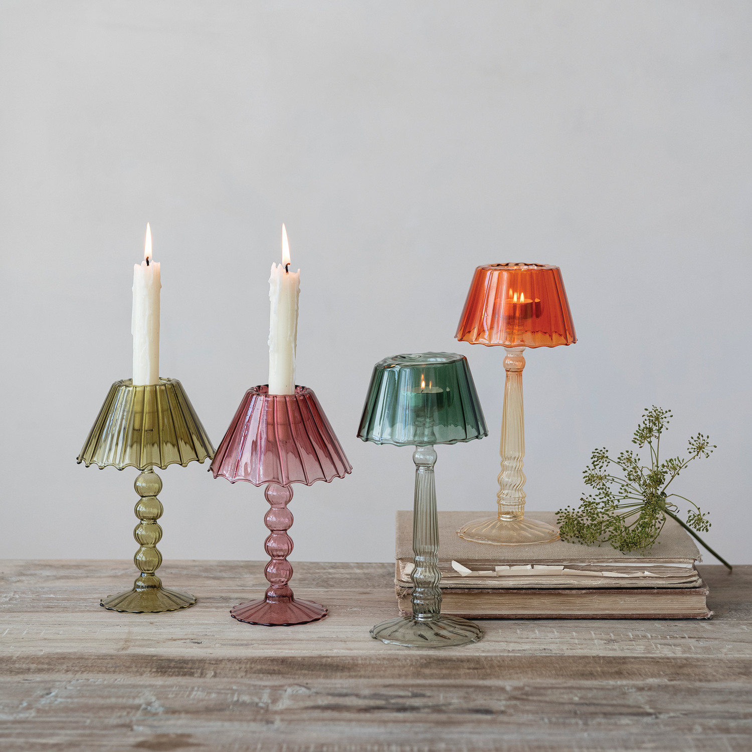 Glass Ribbed Table Light Tealight Holder, 2 Colors