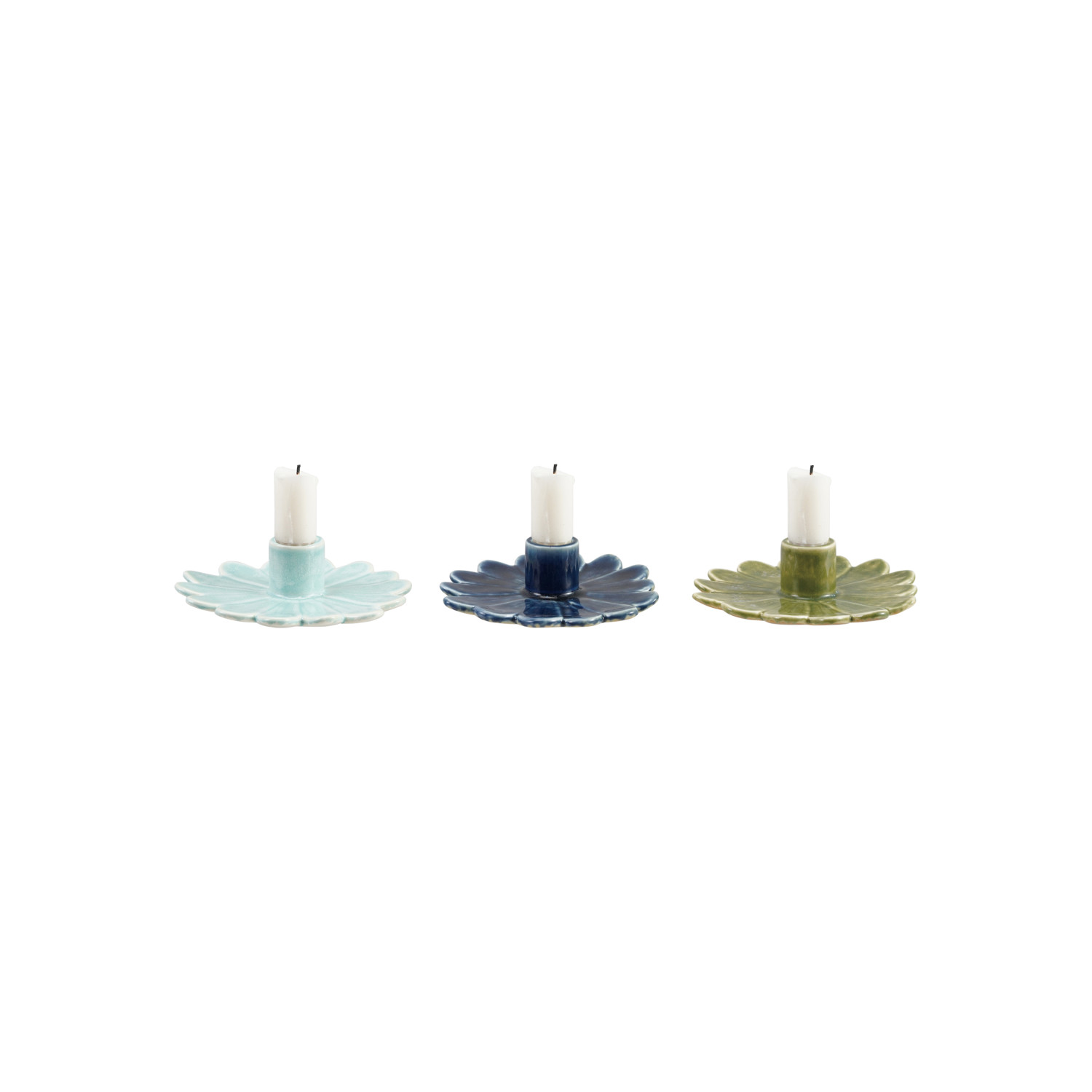 Catalog Name: 5" Round Stoneware Flower Shaped Taper Holder, Reactive Glaze, 3 Colors (Each One Will Vary)