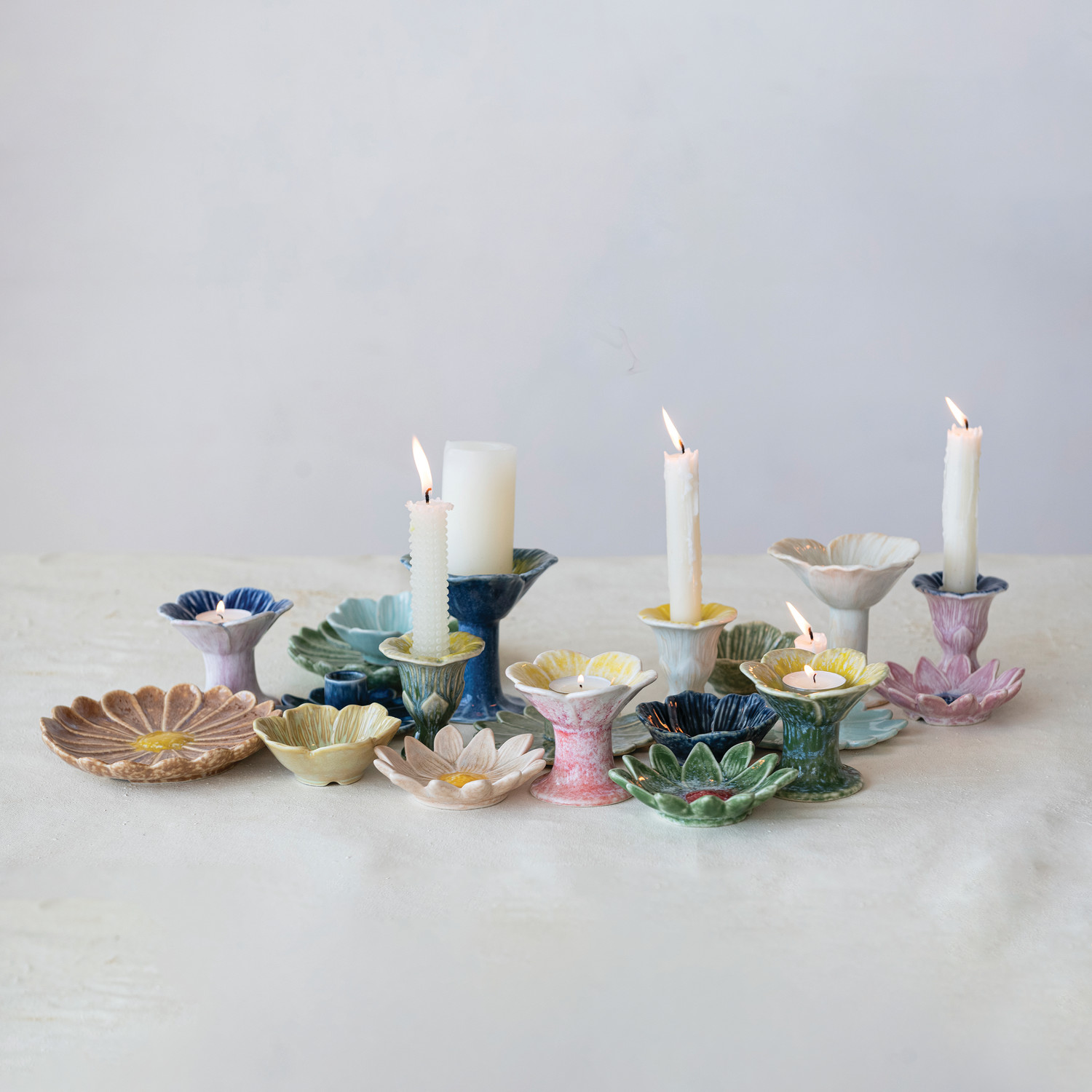 Stoneware Flower Shaped Taper Holder, 3 Colors (Each One Will Vary)