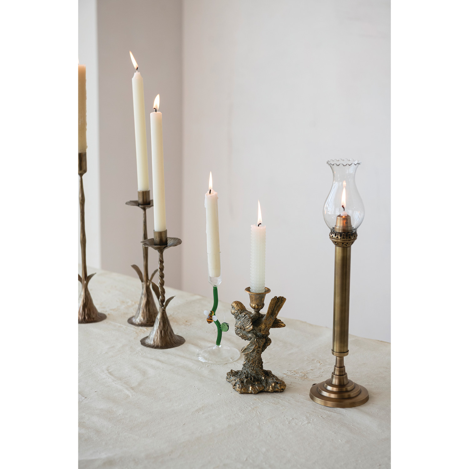 Resin Bird Shaped Taper Holder, Distressed Antique Gold Finish