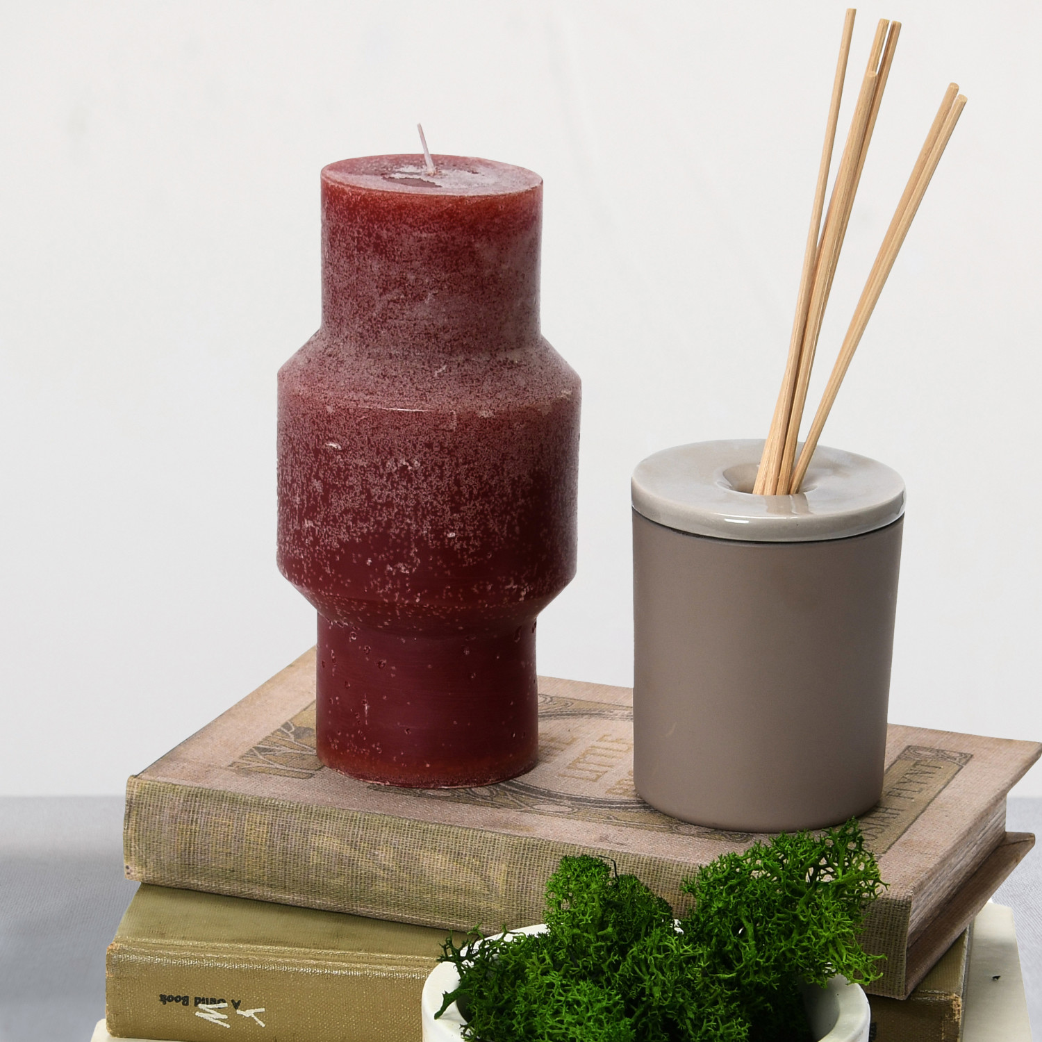 This intricately carved totem pillar candle showcases a striking sculpturesque design. Mix and match the hues and sculptural silhouettes of our artfully crafted totems and tapers for a refined candlelight arrangement on a dining table or mantelpiece.