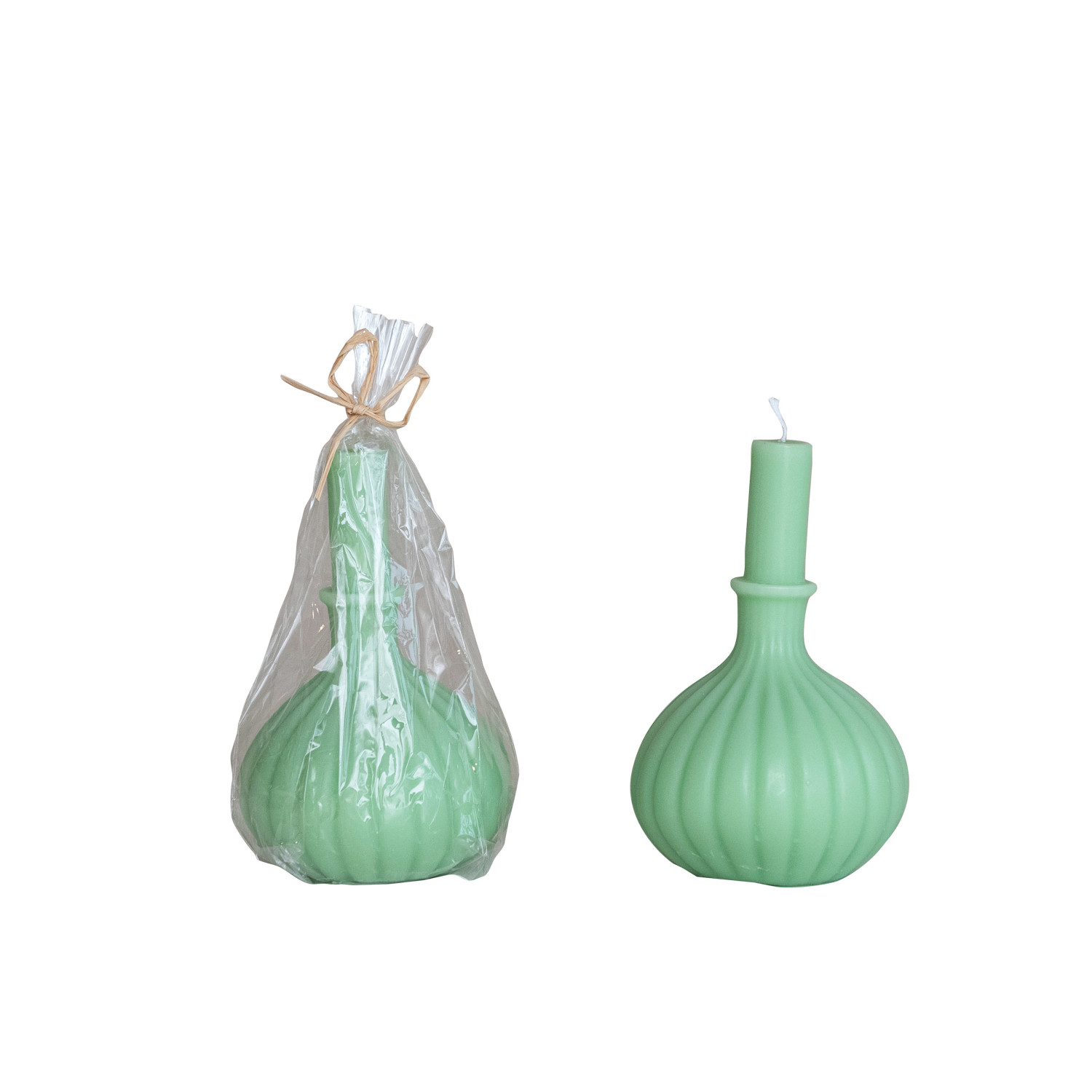 Unscented Taper in Pleated Vase Shaped Candle, Mint Color