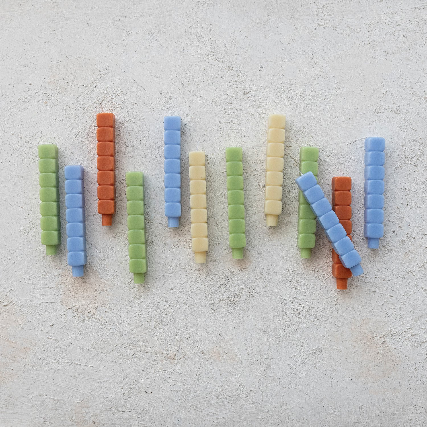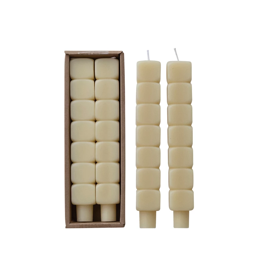 Unscented Stacked Blocks Shaped Taper Candles in Box, Cream Color, Set of 2