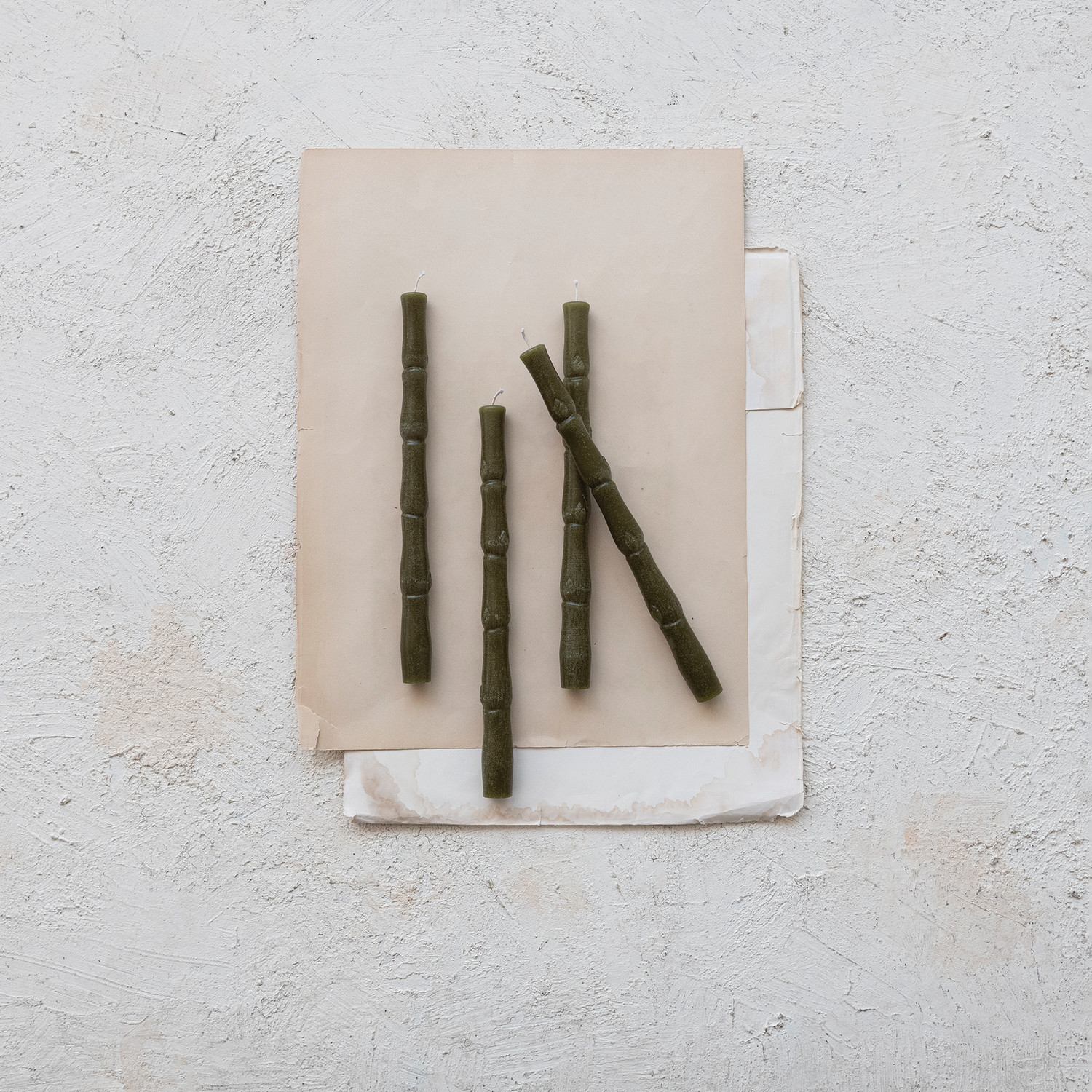 Unscented Bamboo Shaped Taper Candles in Box, Olive Color, Set of 2