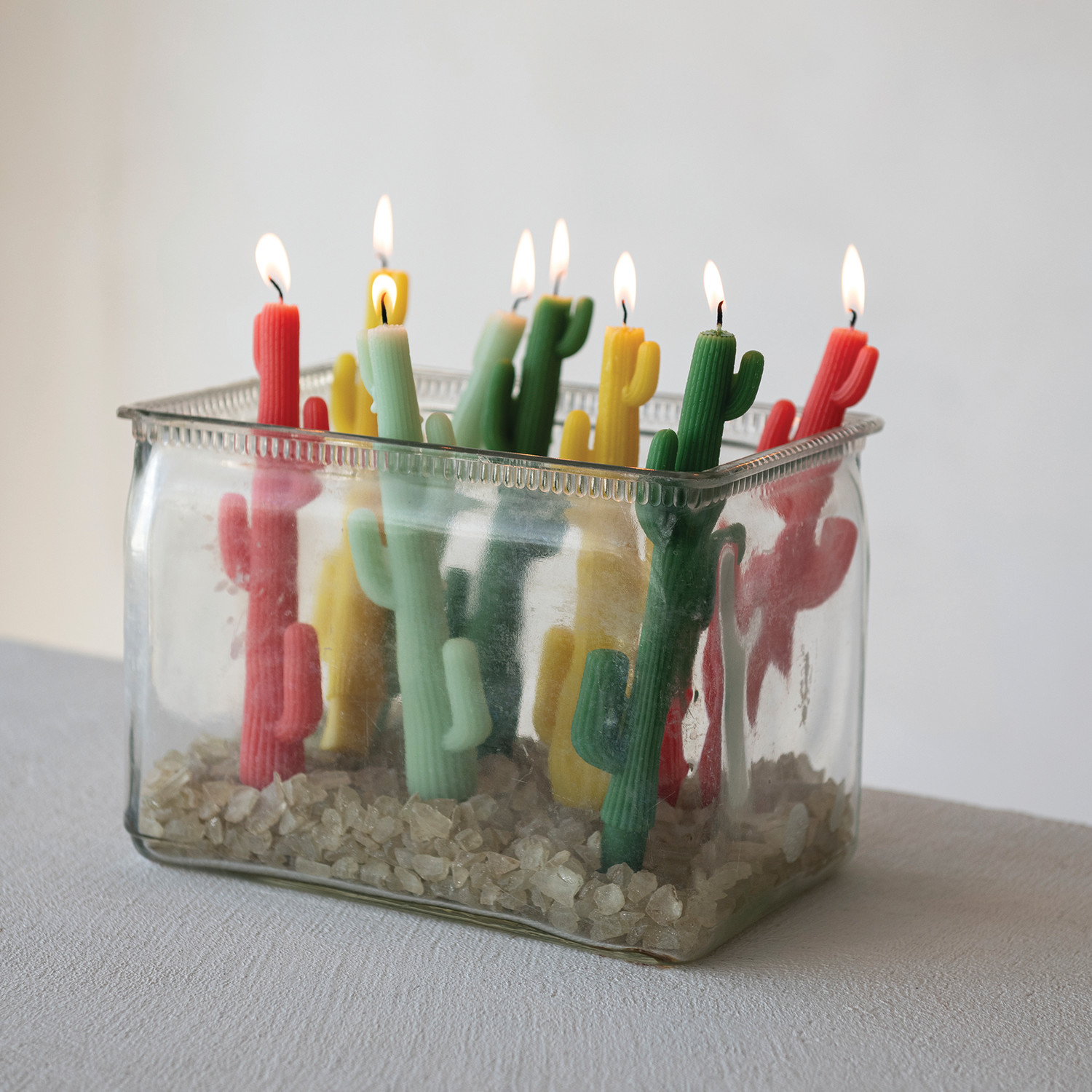 Unscented Cactus Shaped Taper Candles in Box, Green, Set of 2 (Est. Burn Time 5 Hours)