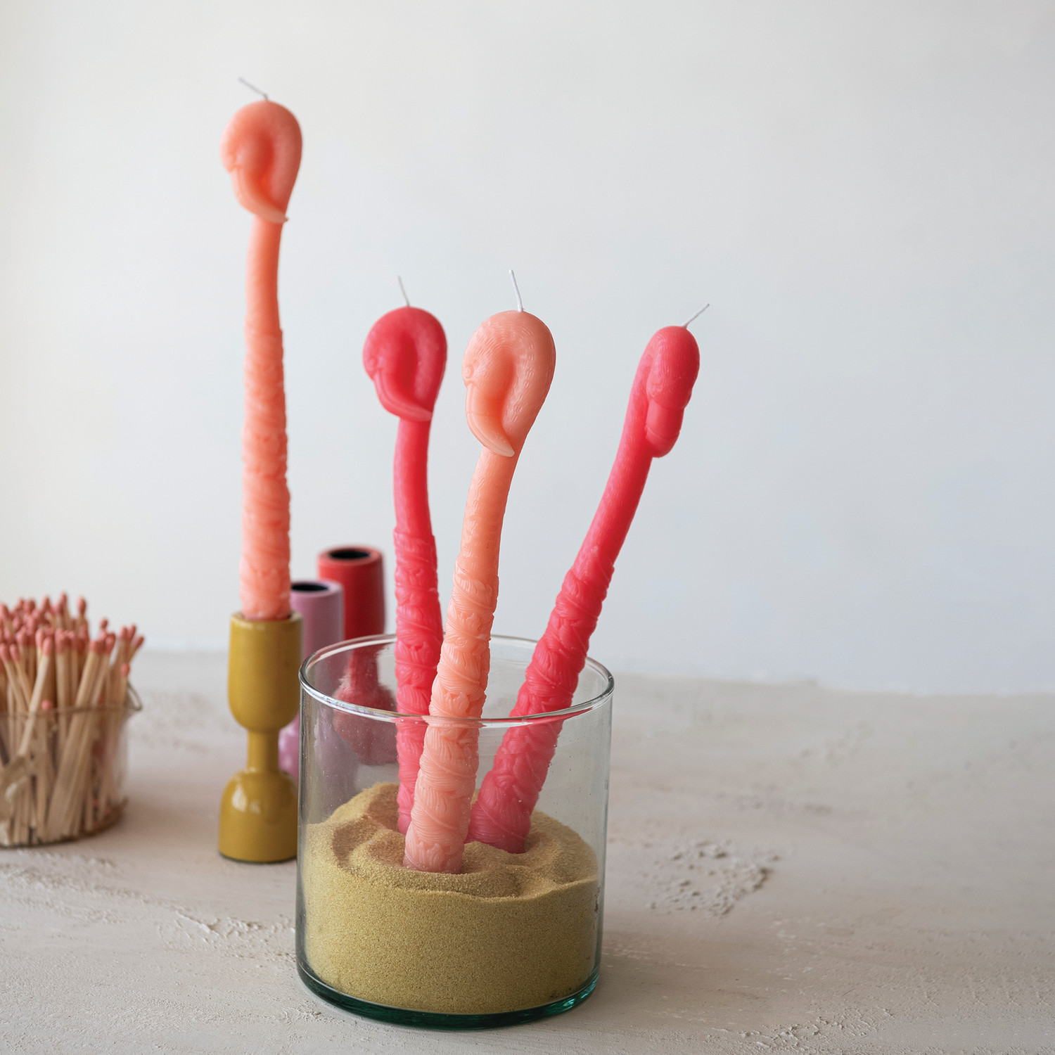 Unscented Flamingo Shaped Taper Candles in Box, Fuchsia Color, Set of 2