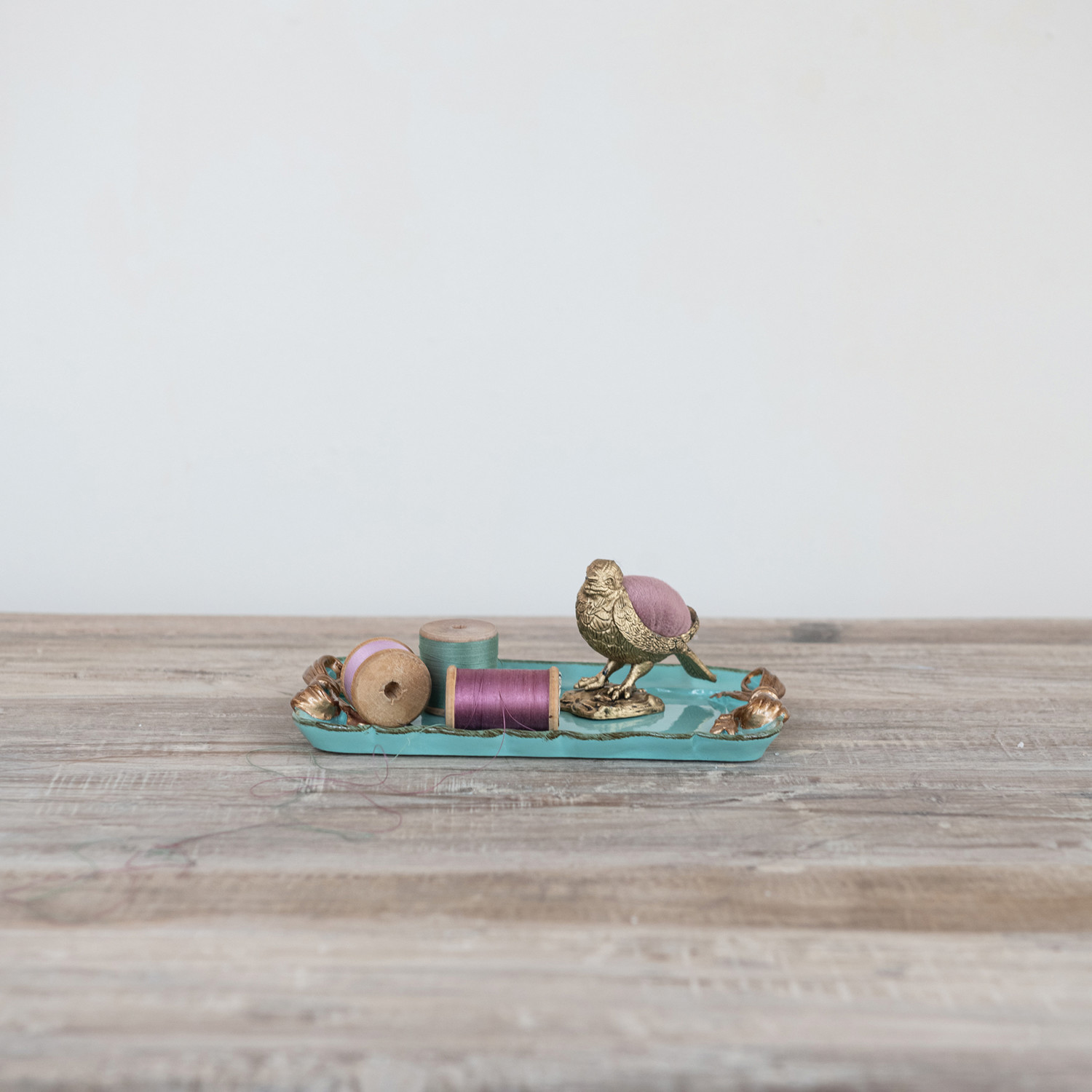 Catalog Name: 7-1/2"L x 4-1/2"W Decorative Metal Tray w/ Gold Finish Bows, Aqua