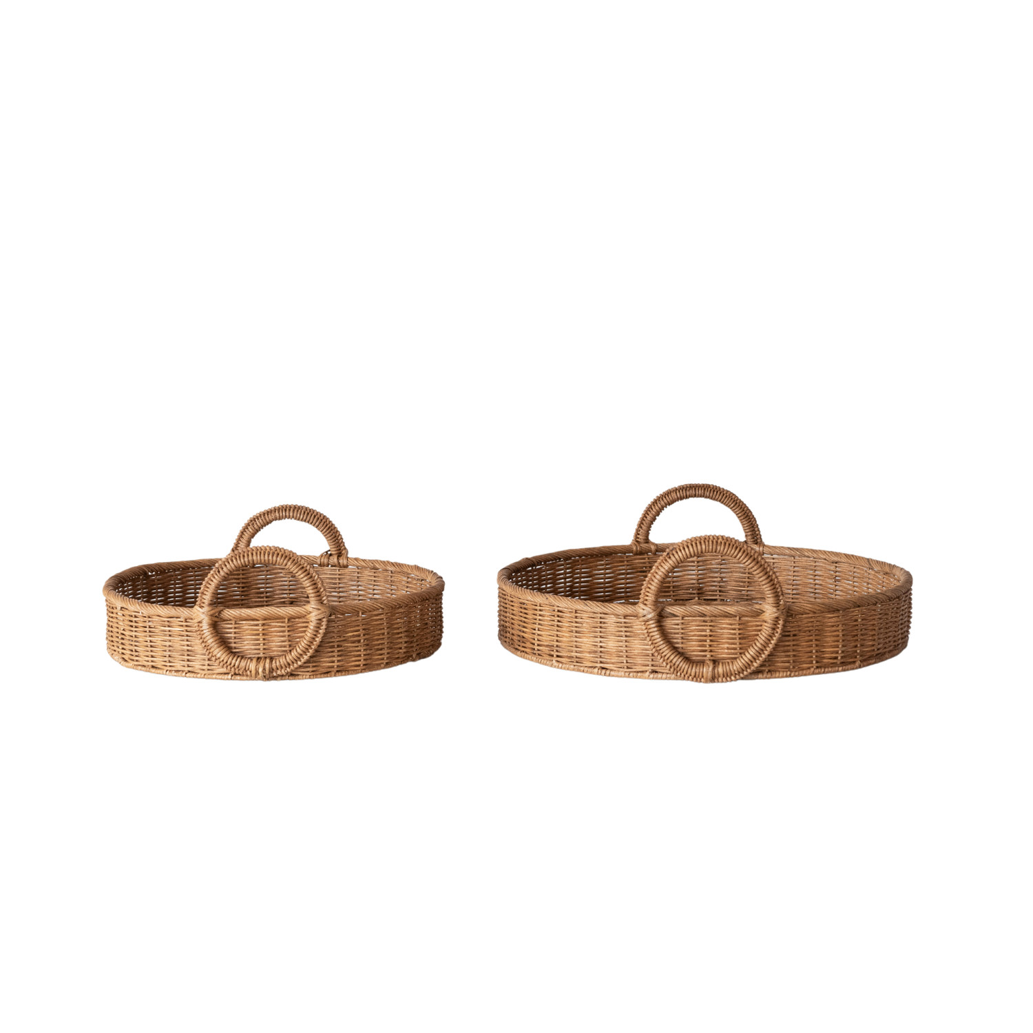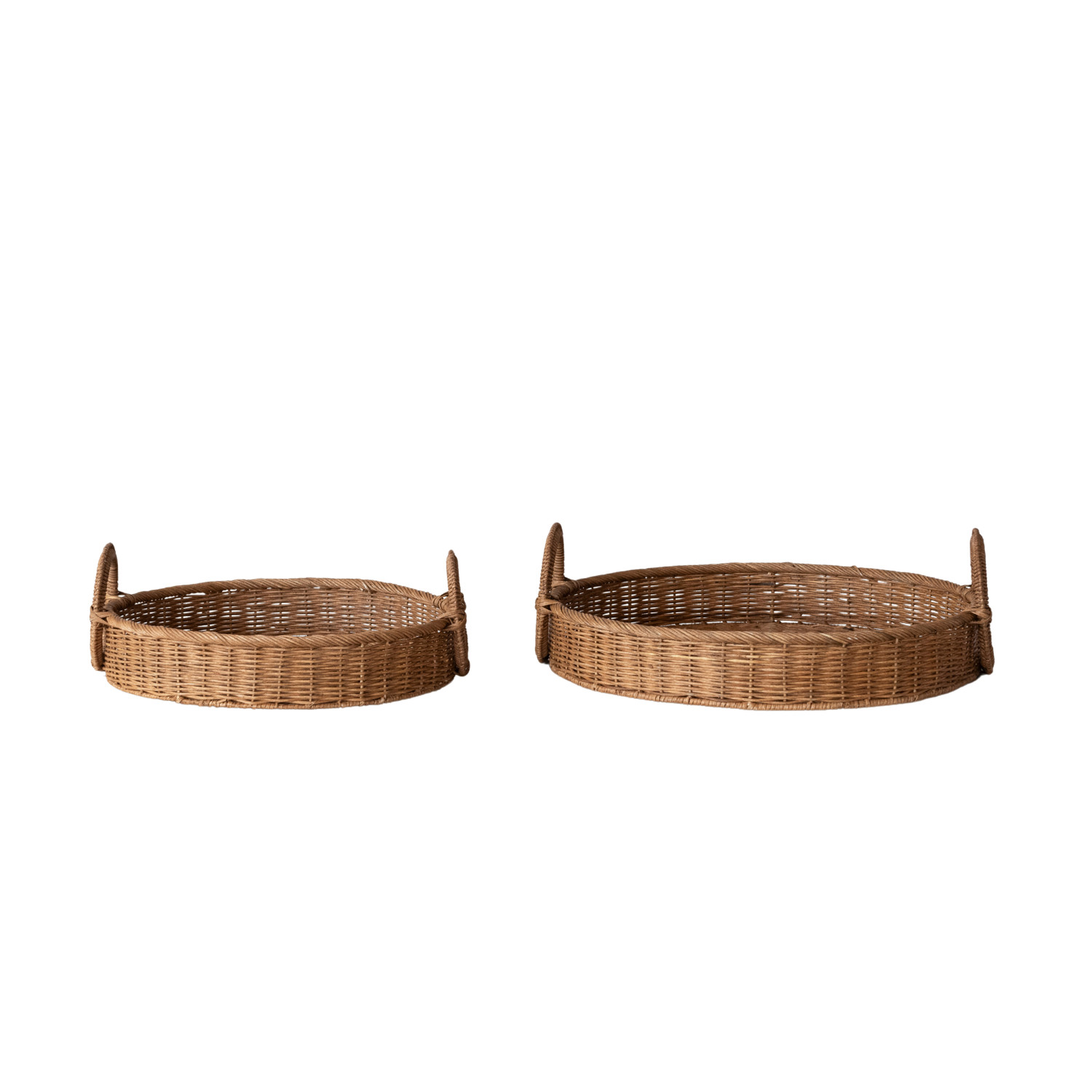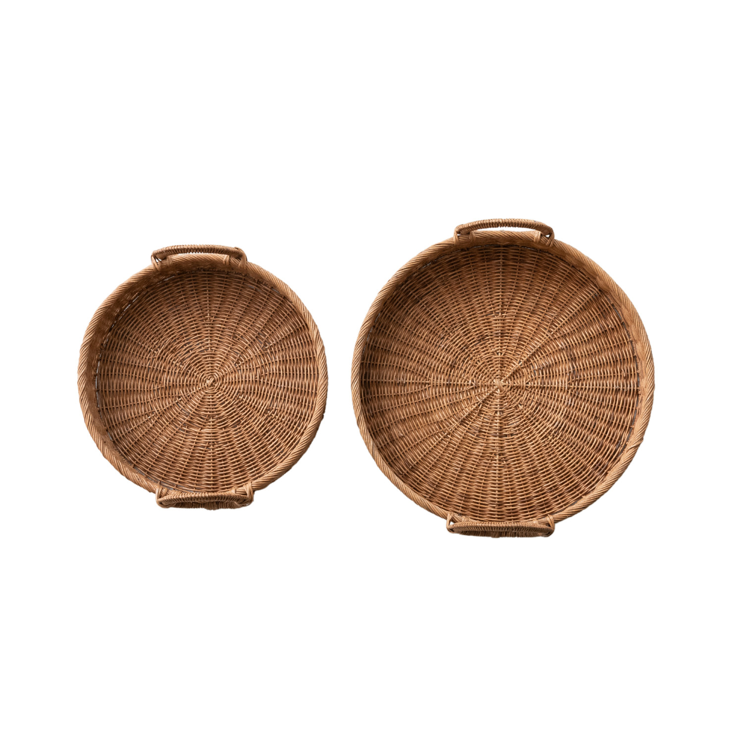 Decorative Woven Rattan Trays with Circle Handles, Natural, Set of 2