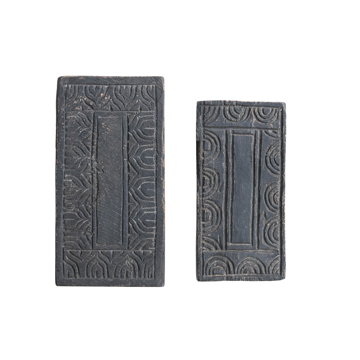 Catalog Name: Approximately 15"L x 8"W x 2-1/2"H Found Carved Wood Riser, Distressed Finish, Black (Each One Will Vary)
