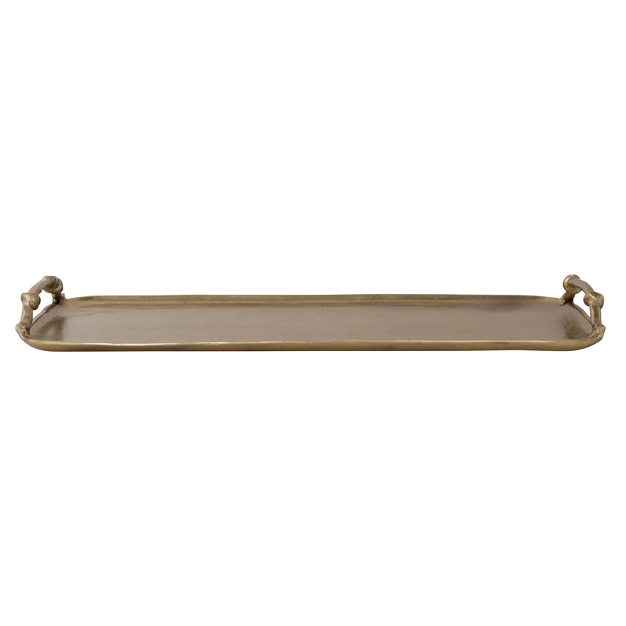 Catalog Name: 21-1/4"L x 10"W Cast Aluminum Tray w/ Handles, Gold Finish