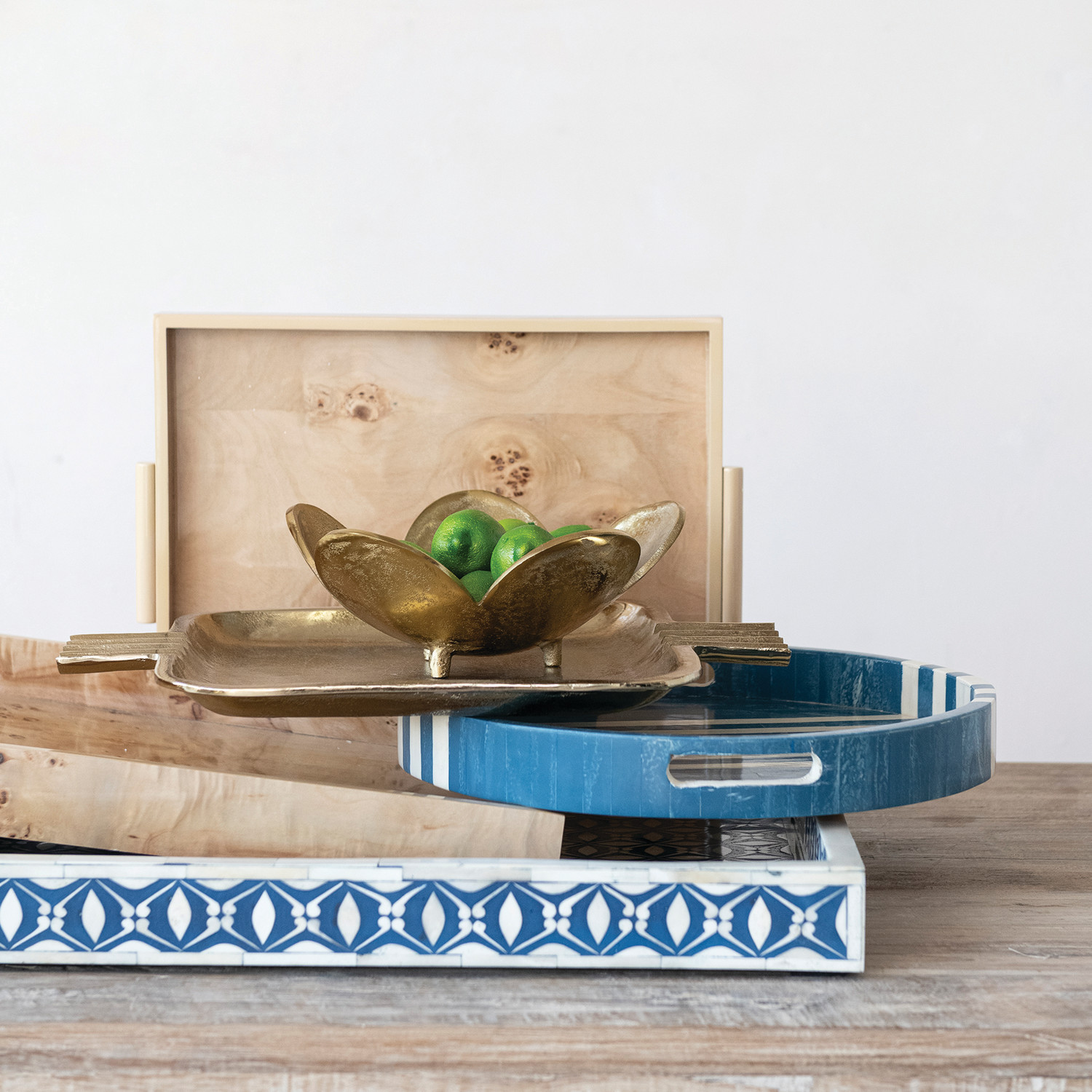 Decorative Inlaid Marbled Resin & MDF Tray with Stripes & Handles (Each One Will Vary)