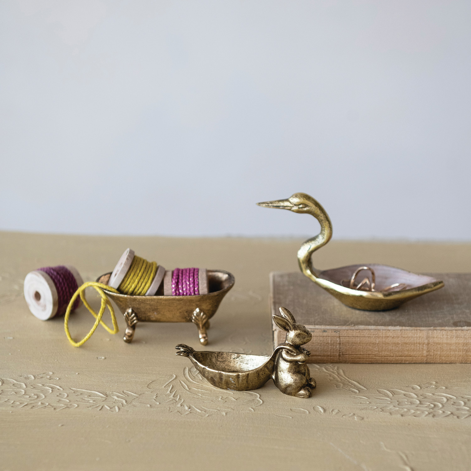 Decorative Pewter Bathtub Shaped Dish, Antique Gold Finish