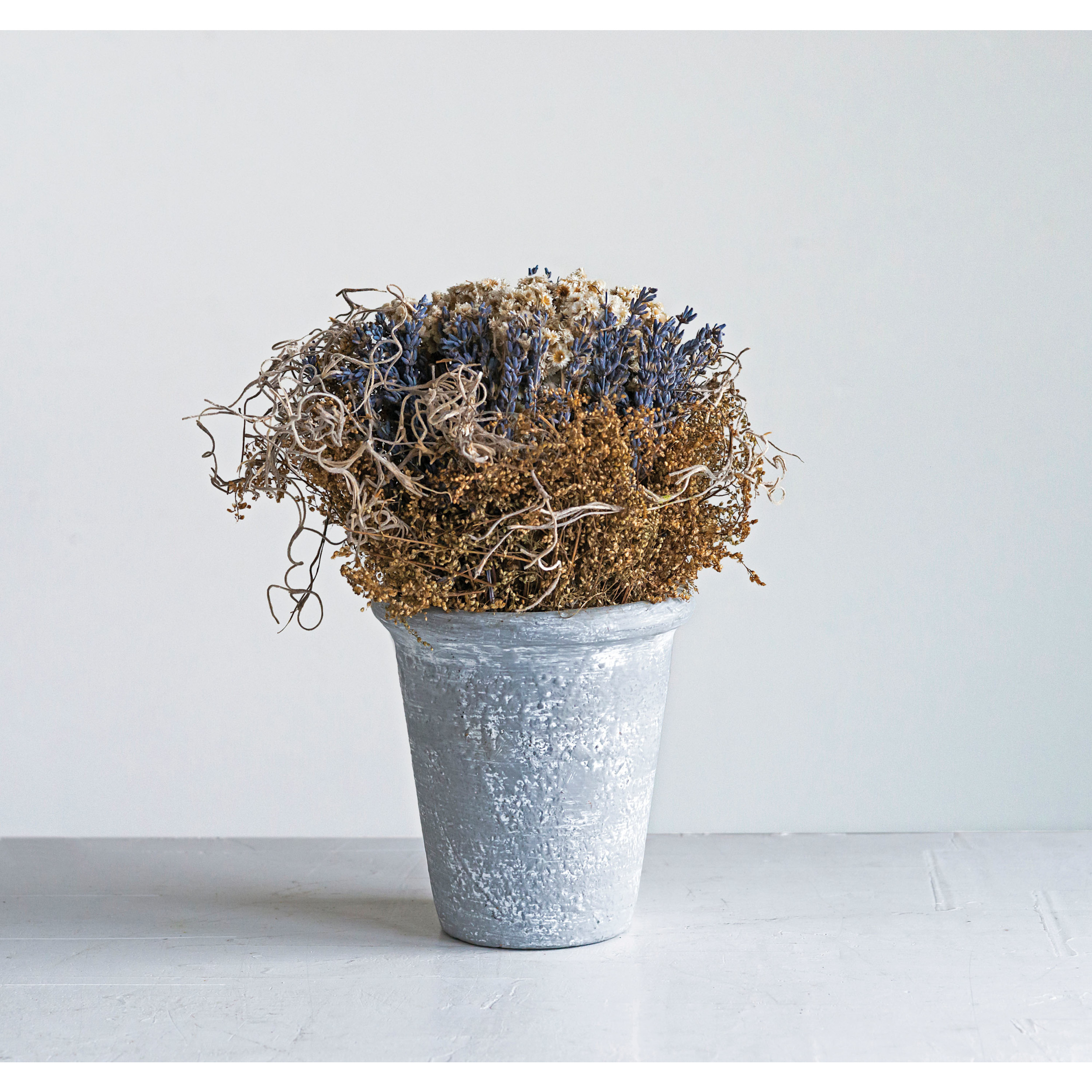 Catalog Name: 8-1/4" Round x 9-3/4"H Dried Natural Botanical Arrangement in Cement Pot