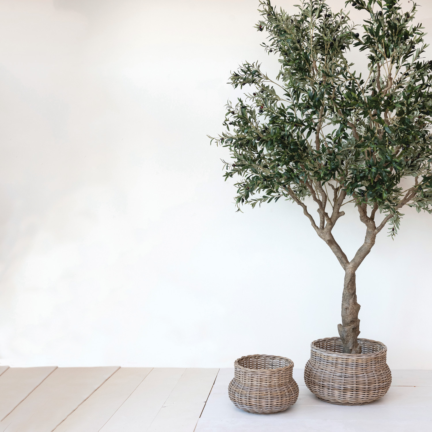 Add grandeur and greenery to any space with this faux olive tree with metal base. This magnificent accessory features a majestic and realistic faux botanical that has a green olive tree with lush foliage and fruits. The plastic material is durable and lightweight and has a lifelike appearance and texture that mimics the real plant. The faux botanical only requires spot cleaning with a soft brush or cloth and does not need any watering or pruning. It has a round shape that measures 73 inches in diameter and 118 inches in height, making it a statement piece for any space. This faux olive tree is a classic accessory that can add elegance and freshness to any farmhouse, botanical, garden, or traditional-style home. It can be used to add grandeur and greenery to any space with its magnificent design and quality material.