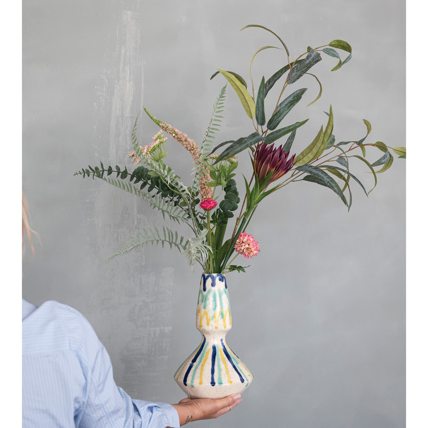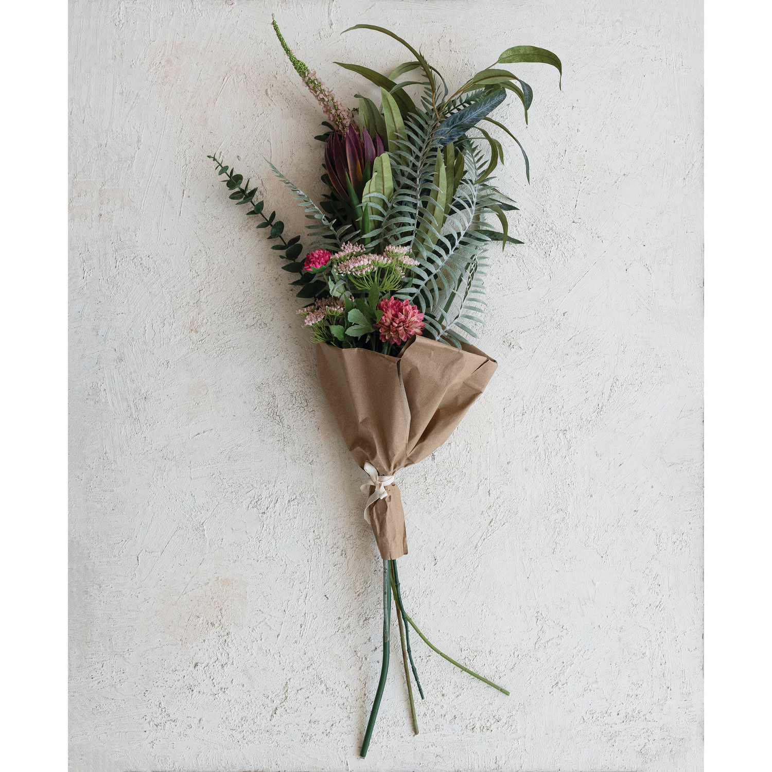 Catalog Name: 43"H Faux Flower Bouquet Wrapped in Paper & Tied w/ Cotton Bow (Contains 8 Pieces)