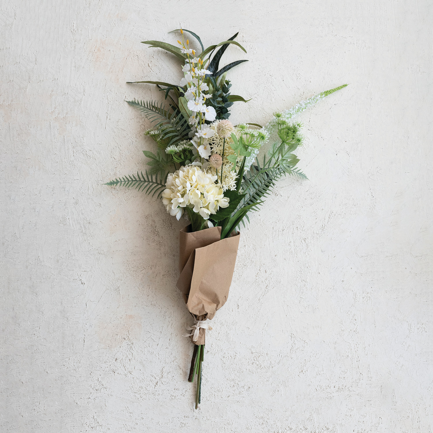 Faux Flower Bouquet Wrapped in Paper & Tied with Cotton Bow (Contains 10 Pieces)